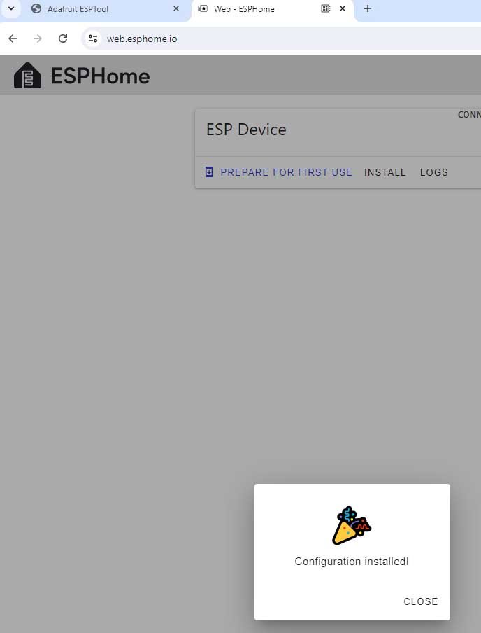 Dle esphome zvolím už ze zoufalství "Prepare your device for first use"