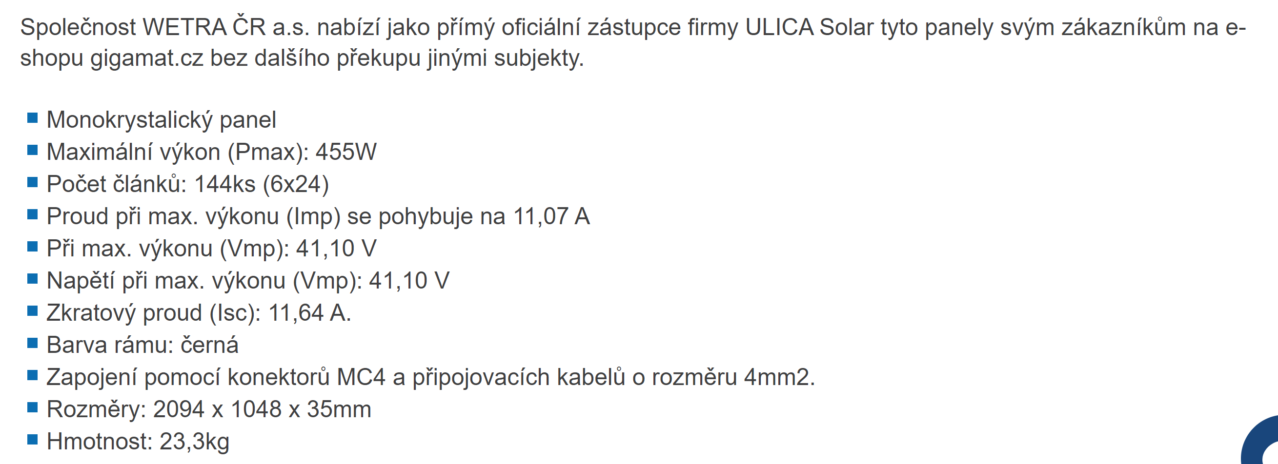 - Výkon panelů [Wp]: 13+ kWp