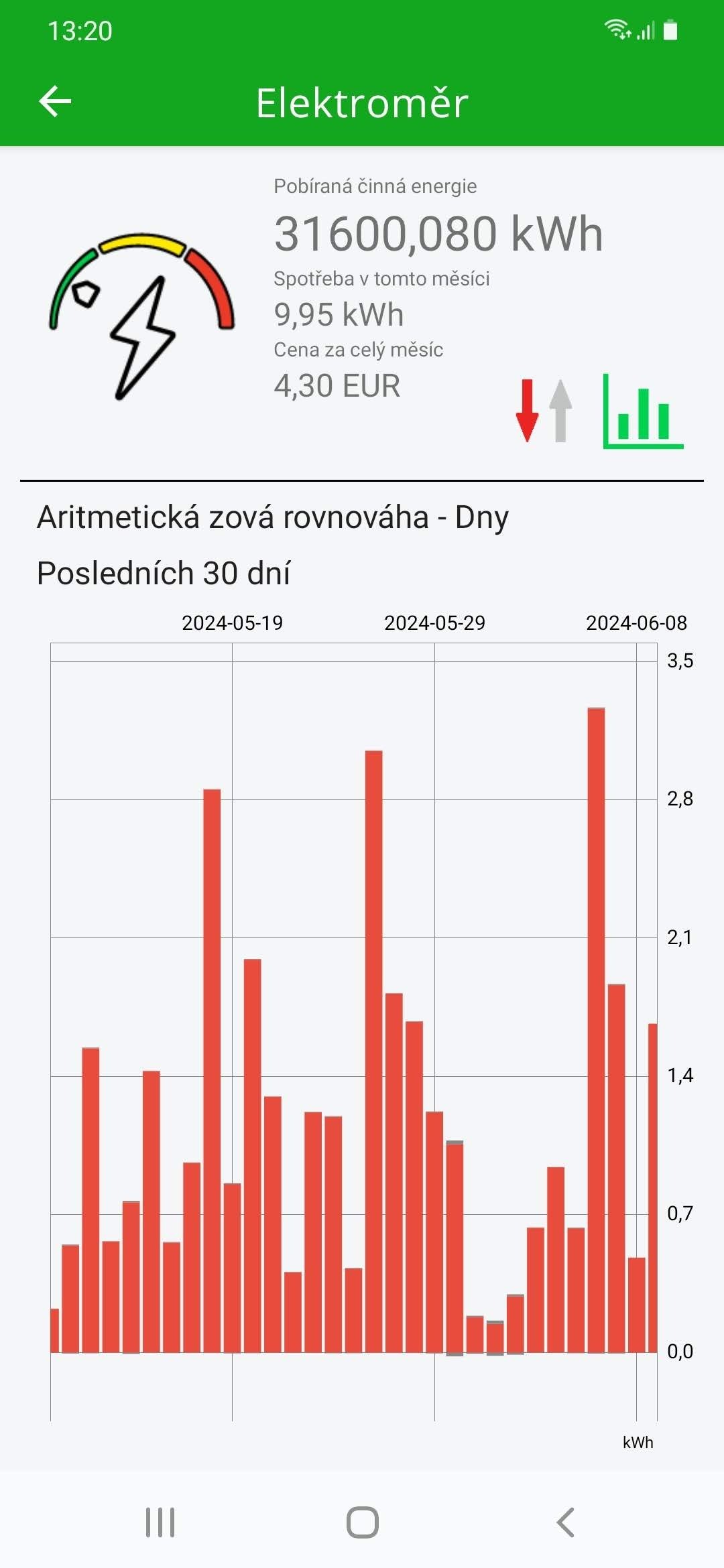 Přes veškeré praní a pečení a denní vaření a můj home-office a neustále puštěné PC apod... jsme nyní lehoučce přes 1kWh denně.