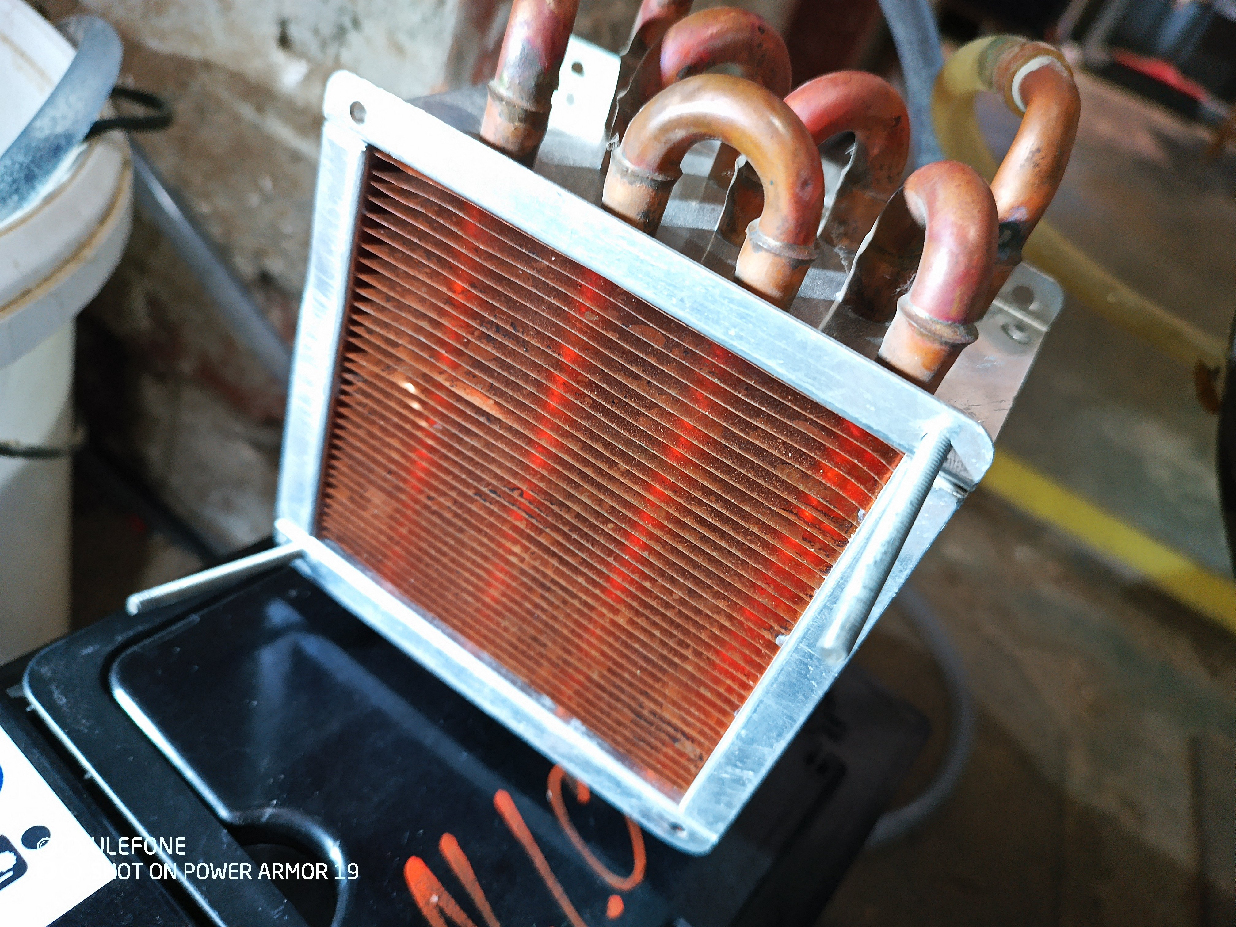 Tak mi Bert nakoniec priniesol finálný výmenník ktorý sa osvedčil perfektne. toto je už večší miner s výkonom cca 3,3kw aj výmenník je večší cca 38x32x9cm