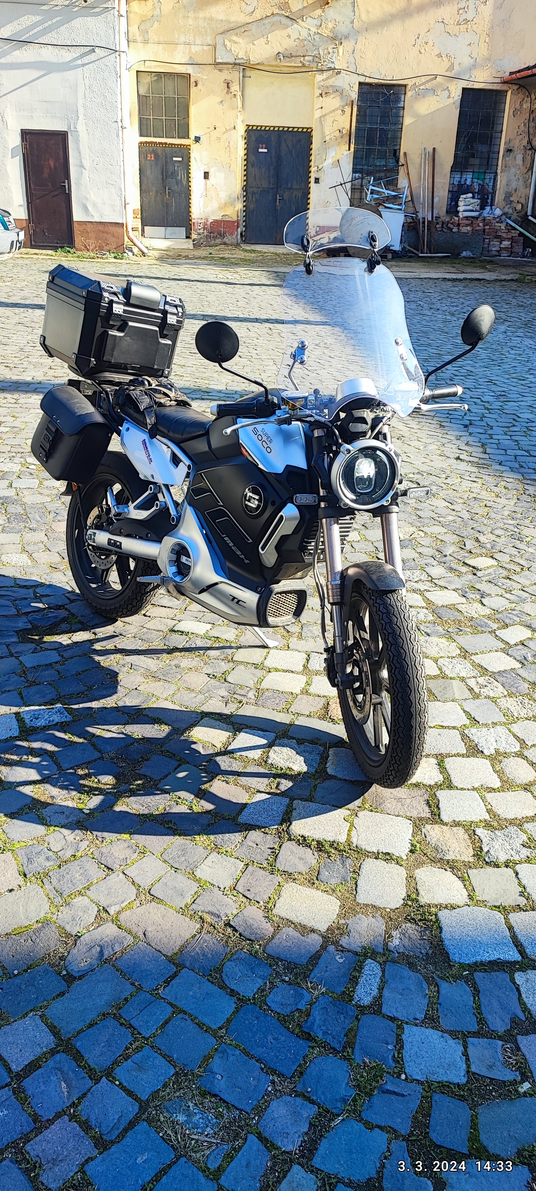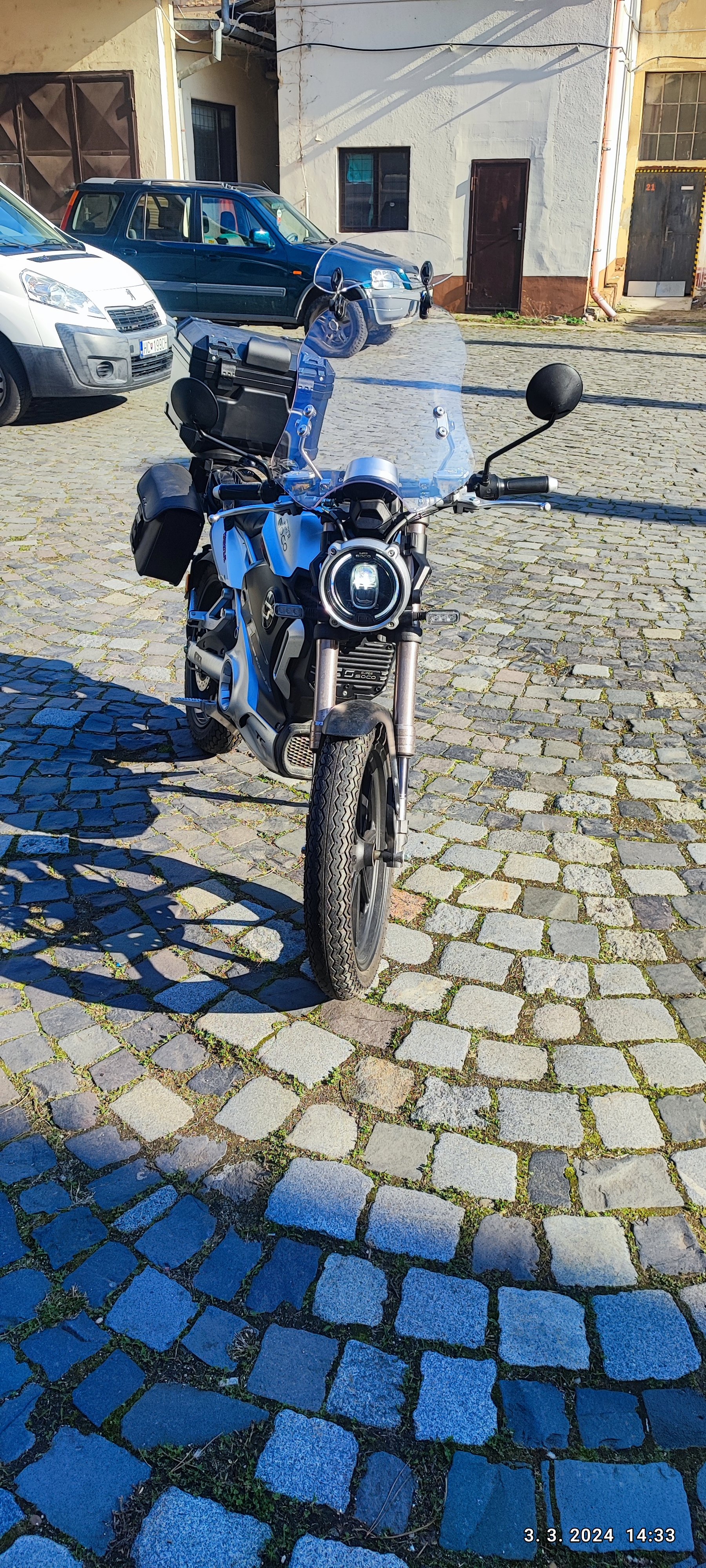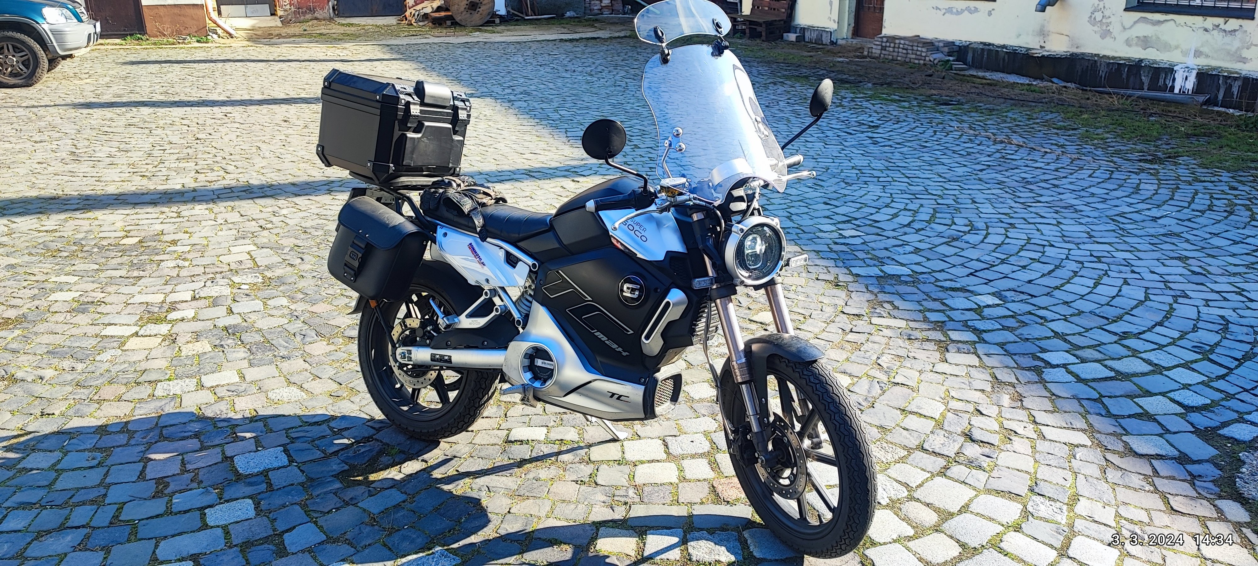 Ja mám aj elektromotorku, po menších úpravách je výborný pomocnik pri nákupoch, ale už som na nej bol aj v TT, alebo PN. Je to čína Super SOCO Tmax, má to asi 5kW motor, tri režimy, podľa nich aj teoretický dojazd, 1.- do 50km/h- 110km, 2.-do 70km/h- 90km, 3.do 100km/h (po vetre) -70km dojazd. Netestoval som tieto parametre, v bezvetrí tých 90km/h nejaku dobu vydrží, samozrejme s klesajúcou energiou v baterke postupne spomaľuje.