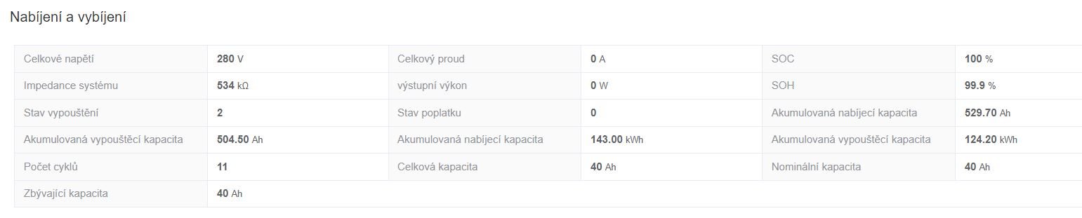 V těch statistikách jsou vidět jen součty celé výroby za těch +-10 cyklů, není tam ale aktuální kapacita baterky, ze které by se pak dala odvodit závislost na tom odporu/indukci, jestli je nějaká nabitá víc nebo míň. Podívej se, co to bude ukazovat při vybití pod 100 SOC. Je zajímavé, že se liší i počty cyklů.