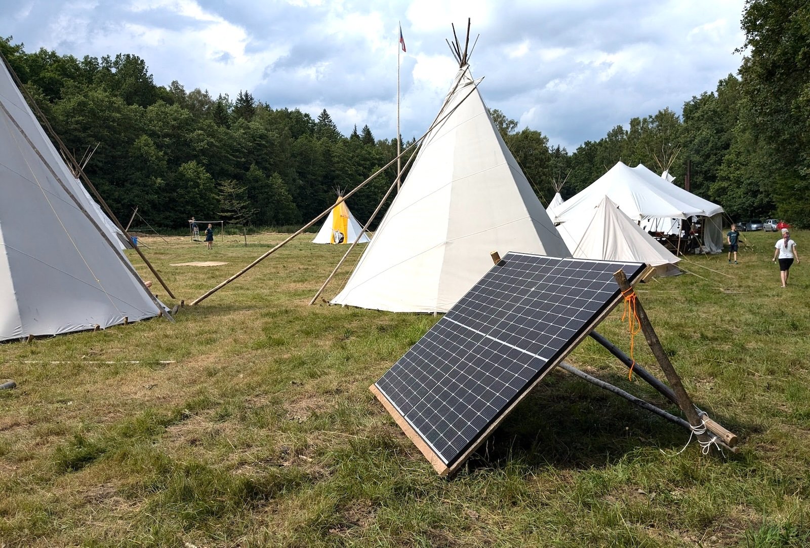 Ohlasy pozitivní, zatím nemuseli sáhnout na ruční pumpu, všechnu vodu pro dva tábory to čerpá samo, lednice jede, energie přebytek. Vedlejší tábor si chodí dobíjet power banky