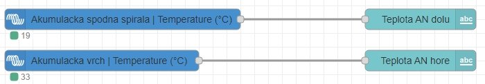 samozrejme ze takto budeme postupovat aj s druhymi rele a namiesto prikazov ktore koncili POWER1 v nodoch mqtt in a out nastavyme POWER2, POWER3, POWER4 cize pre kazde rele zvlast.tak ako to mame v tasmote v tom samotnom rele v casti console kde si to pekne vycitame. no toto su tie styry zakruzkovane ovladace k relatkam co sme si teraz vytvorili. tie ovladace a teploty nad nimi su k rele na cerbe ktore som si spravil inak kedze tie nejdu cez mqtt.tu je flow na ukazku no a samozrejme ze stymto mozeme dalej pracovat napriklad na nejakej automatizaci spinania alebo nieco podobne..na niecom teraz podobnom pracujem ale tiez este neviem riedne robit s nodered tak mito trva nez na nieco pridem.velka vdaka niektorym ludom tunak ktory su ochotny sa delit o nejake skusenosti.tak snad to bude niekomu na nieco.ak mate nejake nejasnosti alebo pripomienky kludne piste..