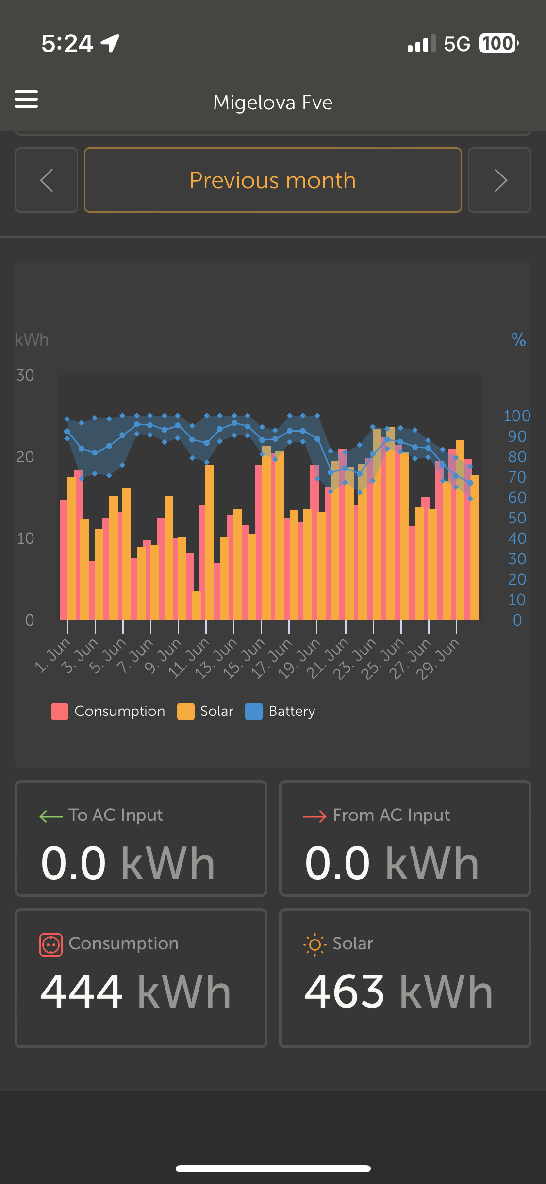 Z DS som zobral 2kwh (za maj/kveten to bola len 1kwh) ktore sa minuli v garazi, ta jedina je na DS stale.ked budem mat niekedy rozkopany dvor na chodniky tak potom natiahnem pupocnu snuru na niektore okruhy aj tam.Zatial sa mi to neoplaca rozkopavat to kvoli par kw zo siete