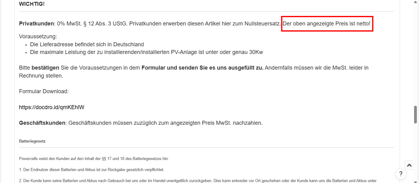 eShop powercells.de píše:Bitte bestätigen Sie die Voraussetzungen in dem Formular und senden Sie es uns ausgefüllt zu. Andernfalls müssen wir die MwSt. leider in Rechnung stellen.