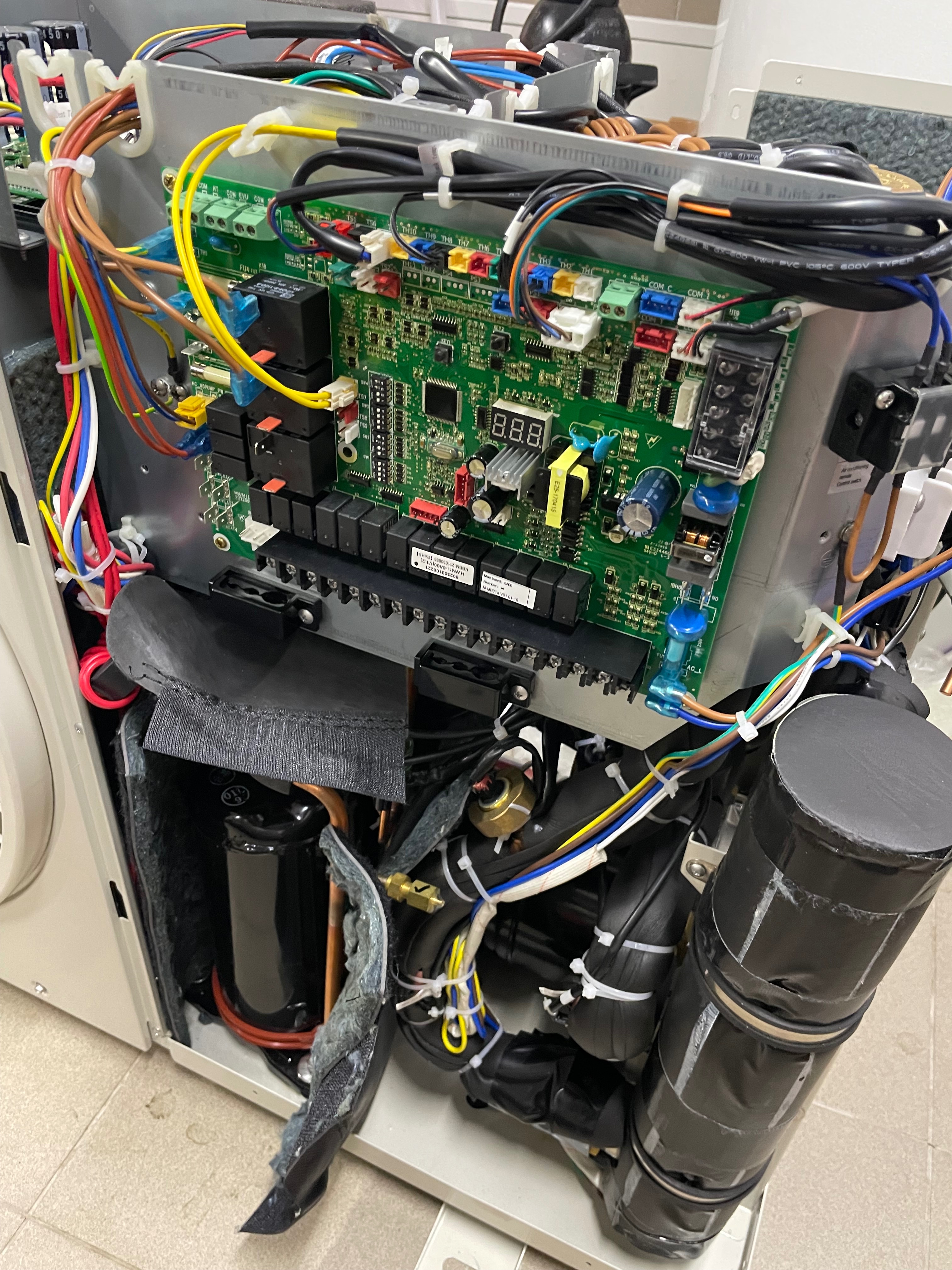 Par fotek sundal jsem z toho dekly. Izolace mi prijde fakt katastrofa takze jsem objednal kaucuk 13mm a zaizoluju vymenik,cerpadlo,potrubi,bivalenci, nevim jake chladivove potrubi by melo byt jeste izolovana prijde mi tam dost holych trubek. Kompresor asi nema smysl vic izolovat? Jinak kondenzator ma rozmer 850x660x45mm a je tam 60trubicek 7,2mm.