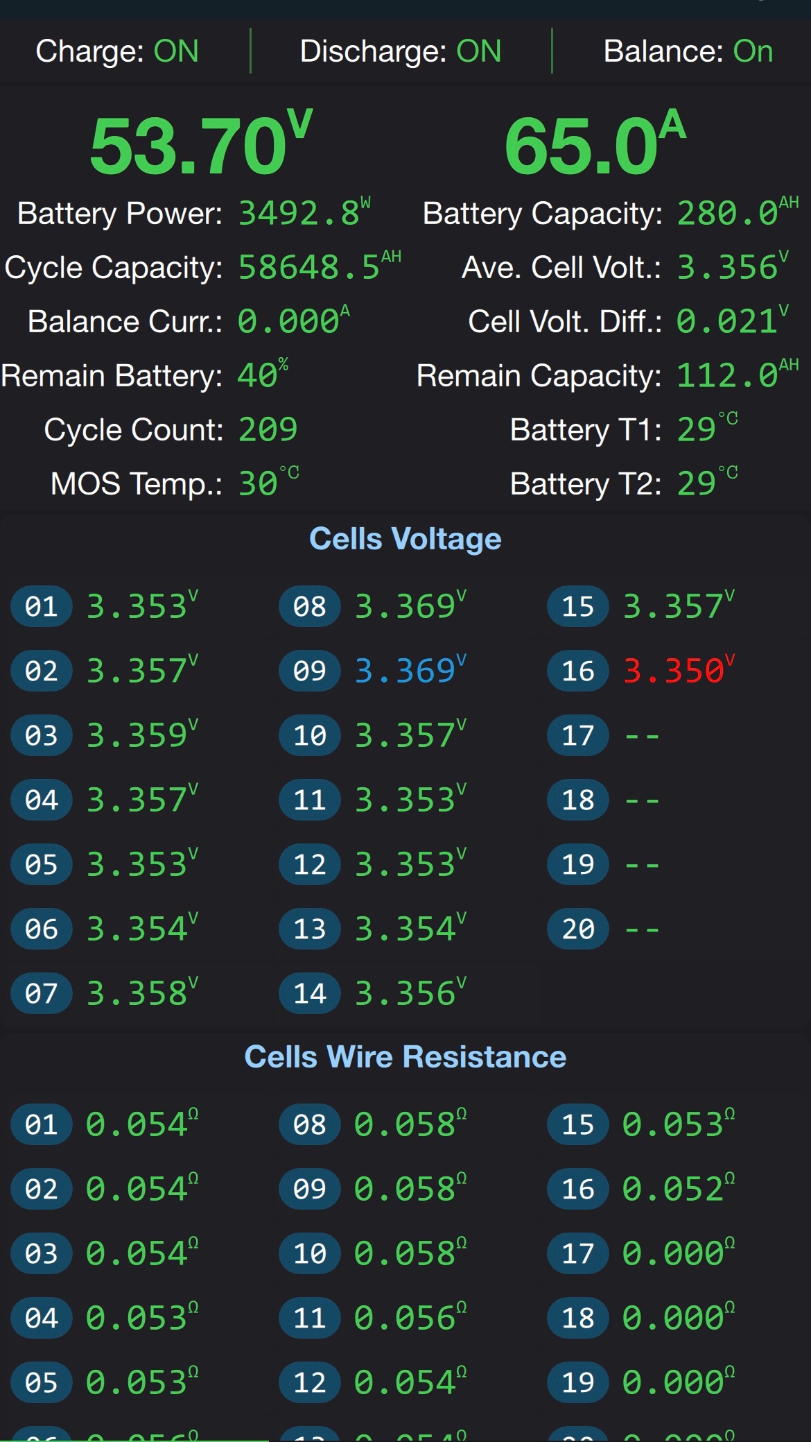 Soban píše: sob srp 03, 2024 9:57 amJinak nemáš náhodou špatnou propojku mezi těmi články, skontroluj jaký je úbytek na těch propojkách, zda je dobrý kontakt na těch drátkách k BMS zda měří dobře.....