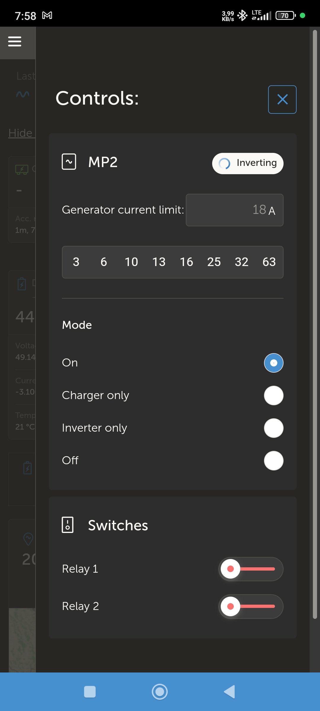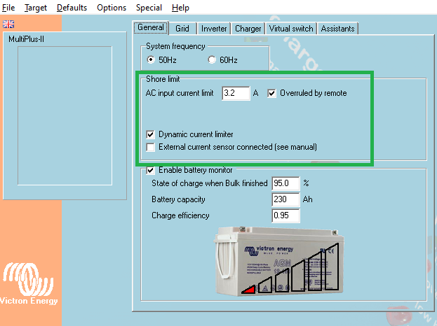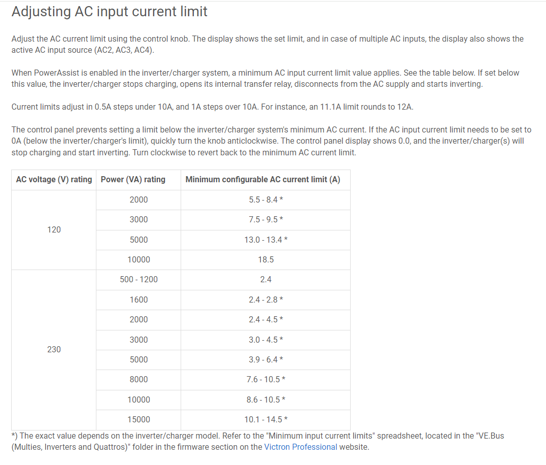 Ne, chápu to tak, že Victron MP má 4kW a VPhoenix má tak 1600W, primárně jede Phoenix a přidává se MP. Pokud se nastaví méně než 7A např 4 u parametru current limit pro AC in (záložka General v VE Config) a MP začne po překročení těchto amper přidávat dalších až 17, jenže, když je naráz potřeba víc než součet 4+17, tj třeba 22 A na AC out MP, začne se celá série přetěžovat. V tu chvíly by to chtělo vyslat přes VEBus nějaký příkaz k přenastavení Input limit current na MP ze 4 na 7. Po poklesu amper na AC out MP přes nějakou prodlevu zase další příkaz o návrat na 4A pro current limit ACIn.