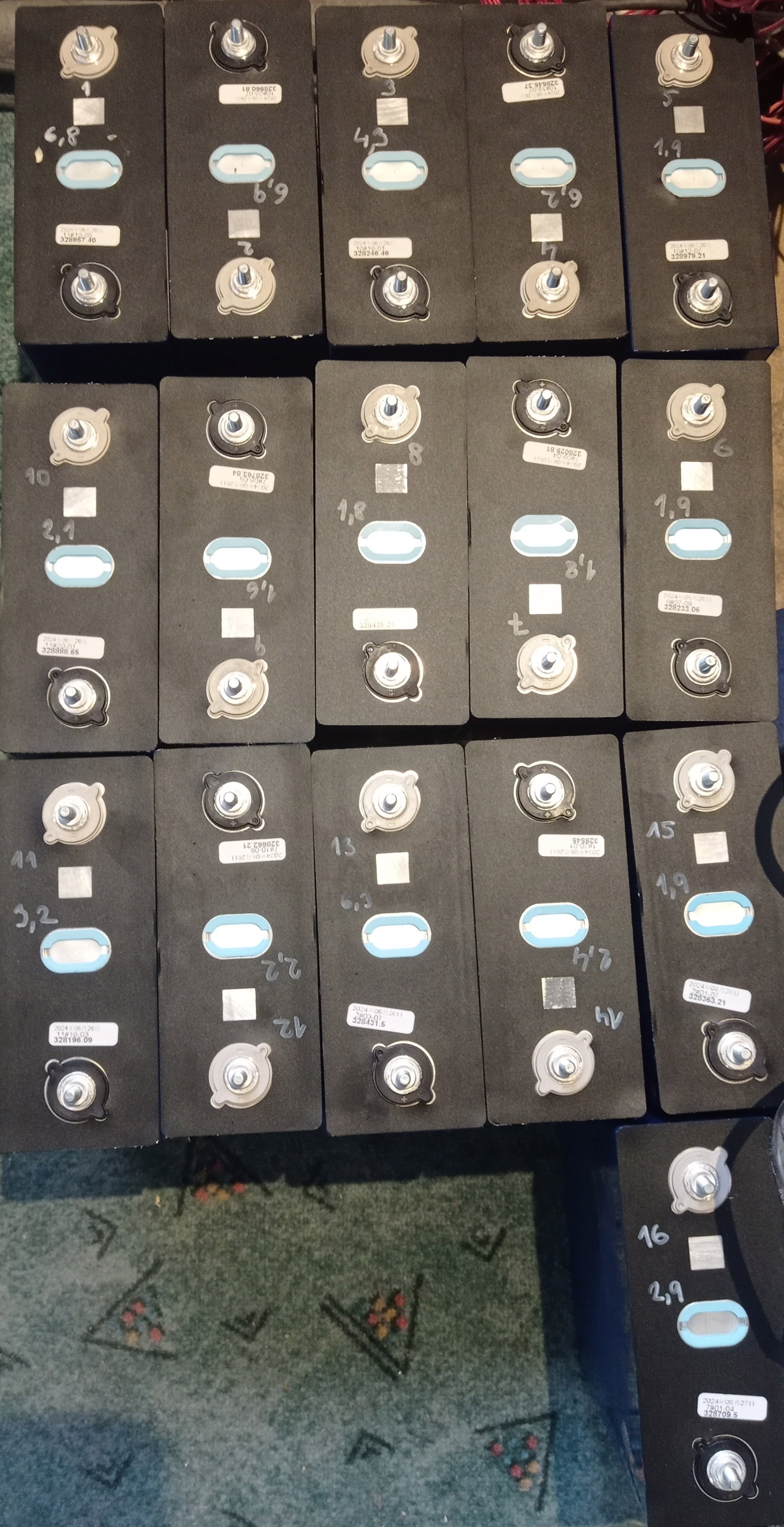 Po dlouhé době přišly články 315 Ah B - Envision HC-L315A od nkon - prismatické články. Abych nemusel nastavovat kablíky od JK-BMS, tak jsem si na nečisto rozvrhl aby baterie nebyla v řadě a kablíky dodávané s JK-BMS stačily. Nějak takto to vyhovovalo: