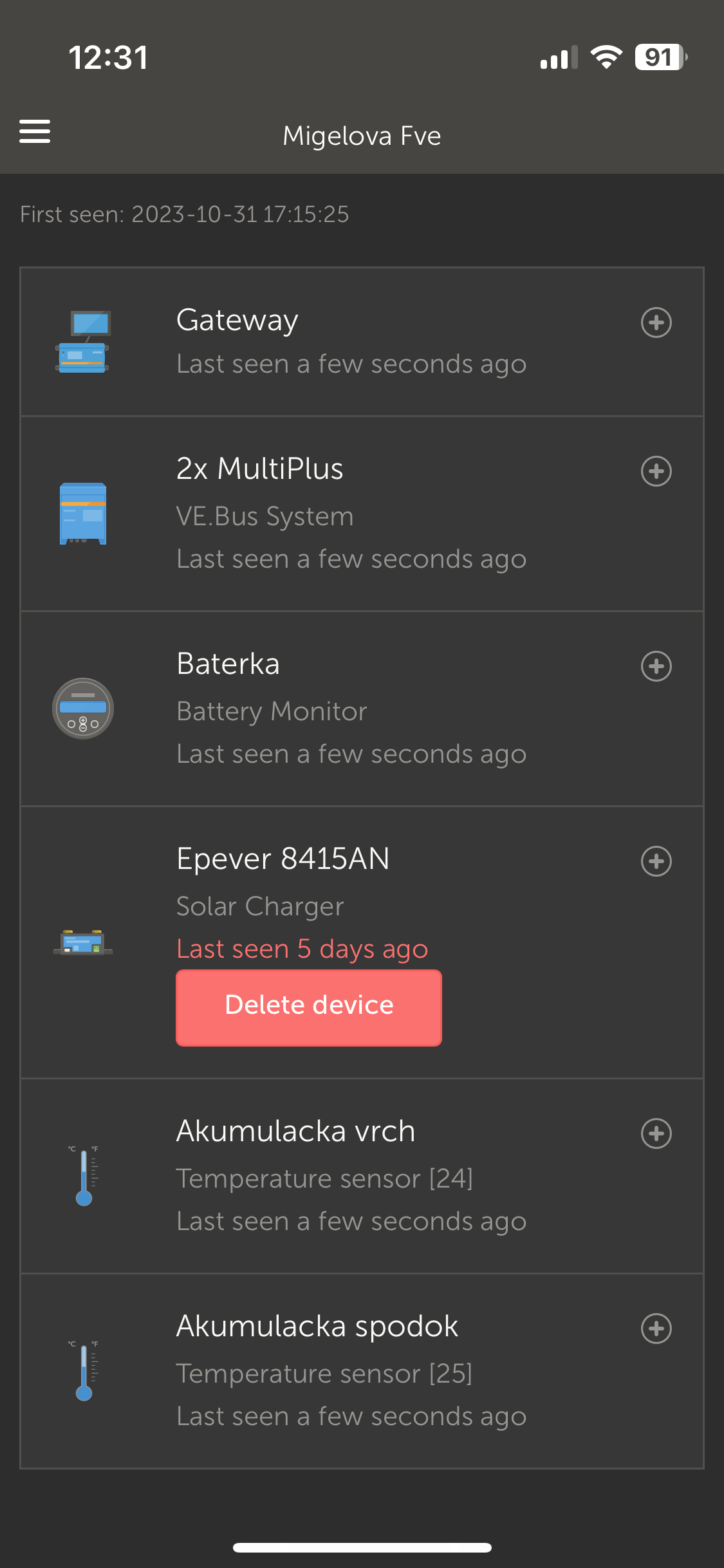 První je na těch Epeverech regulátorech, krásně se zobrazuje výkon (samozřejmě všech dohromady) ve VRM pod dlaždicí PV Charger, spolu s Victronníma reglama.