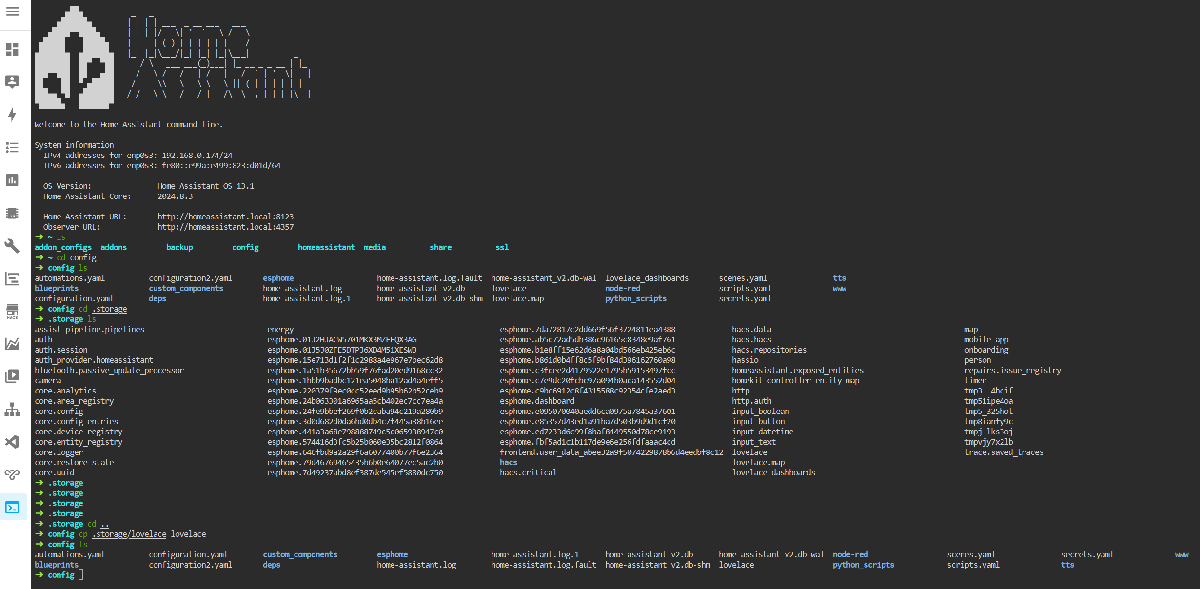 Tak pro ty, co jsou na tom podobně jako já. Adresář .storage je skrytý, proto není vidět. V HA je terminál a v něm daný soubor najdu a udělám kopiii v jiném (neskrytém) adresáři takto: