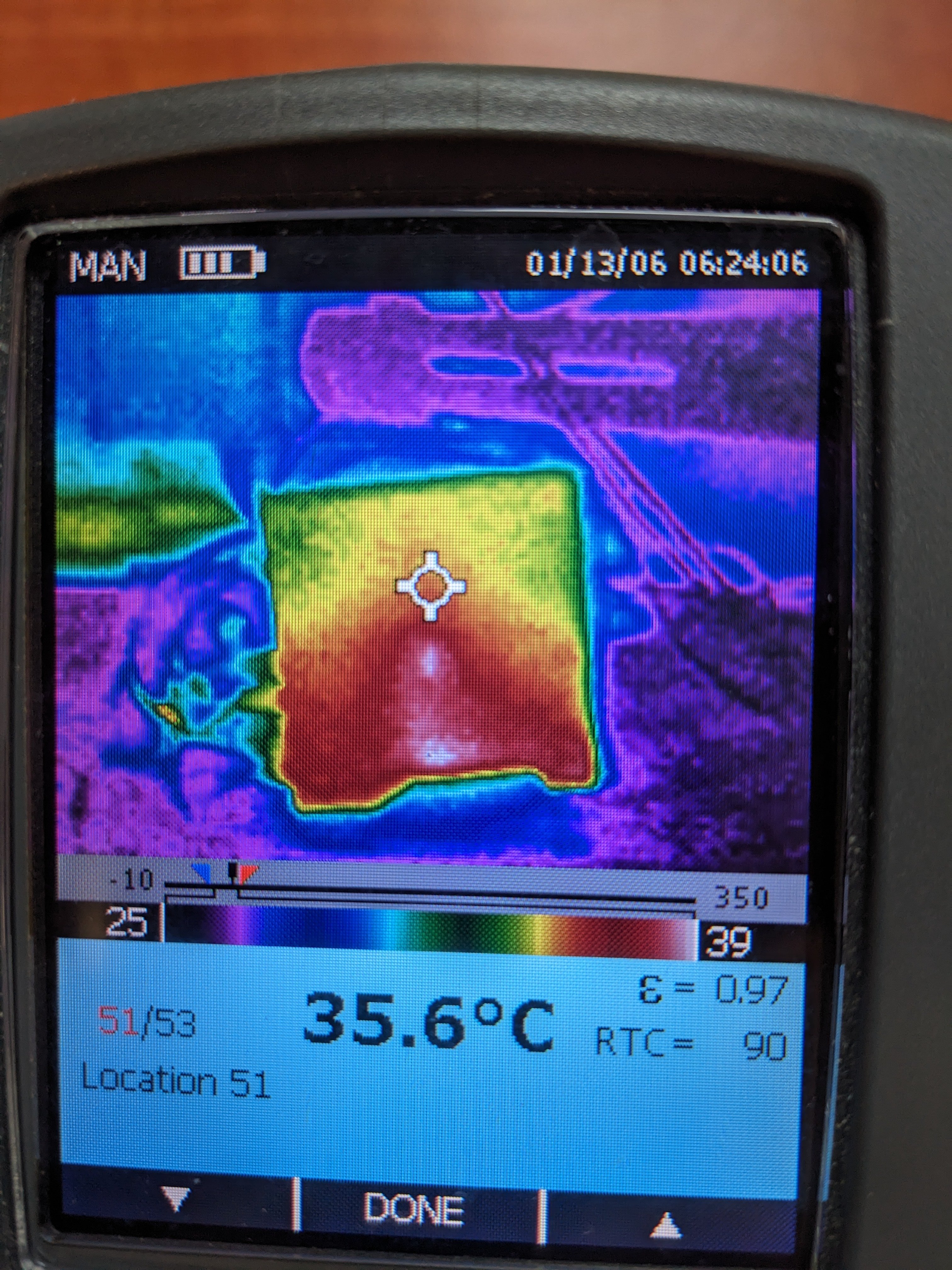 Pro základní kontrolu, jestli je někde něco teplého, tak je to ok. (Dodám, že nemám ten parkside, mám podobnou z amazonu) Většina těchto lenvějších (aliexpres kvalita s různým dekorem) trpí na jeden problém a to je pouze plně automatická stupnice. Nejteplejší je žluté, nejstudenější modrofialové. To znamená, že pokud je na obrázku něco hodně horké, tak to svítí žlutě, ale co je teplé, to neuvidíte, protože to bude příliš blízko teplotě pozadí. Viz porovnat ten obrázek konvice. Druhý nedostatek bývá, že se ta stupnice nedá "zamknout", takže když bych to chtěl pro kontrolu domu, tak dveře, okno, podlaha, strop... nic neporovnám mezi sebou, protože vždy to nejteplejší bude žluté, jen jednou bude žluté patnáct stupňů, jednou třicet. Na kontrolu rozvaděče tedy dobré, na porovnávání nic moc a stejně tak pokud by to bylo v prostředí, kde by byl na pozadí silný zdroj tepla. Furt to tam jde tedy měřit po kousku stylem namířím na bod, odečtu teplotu.