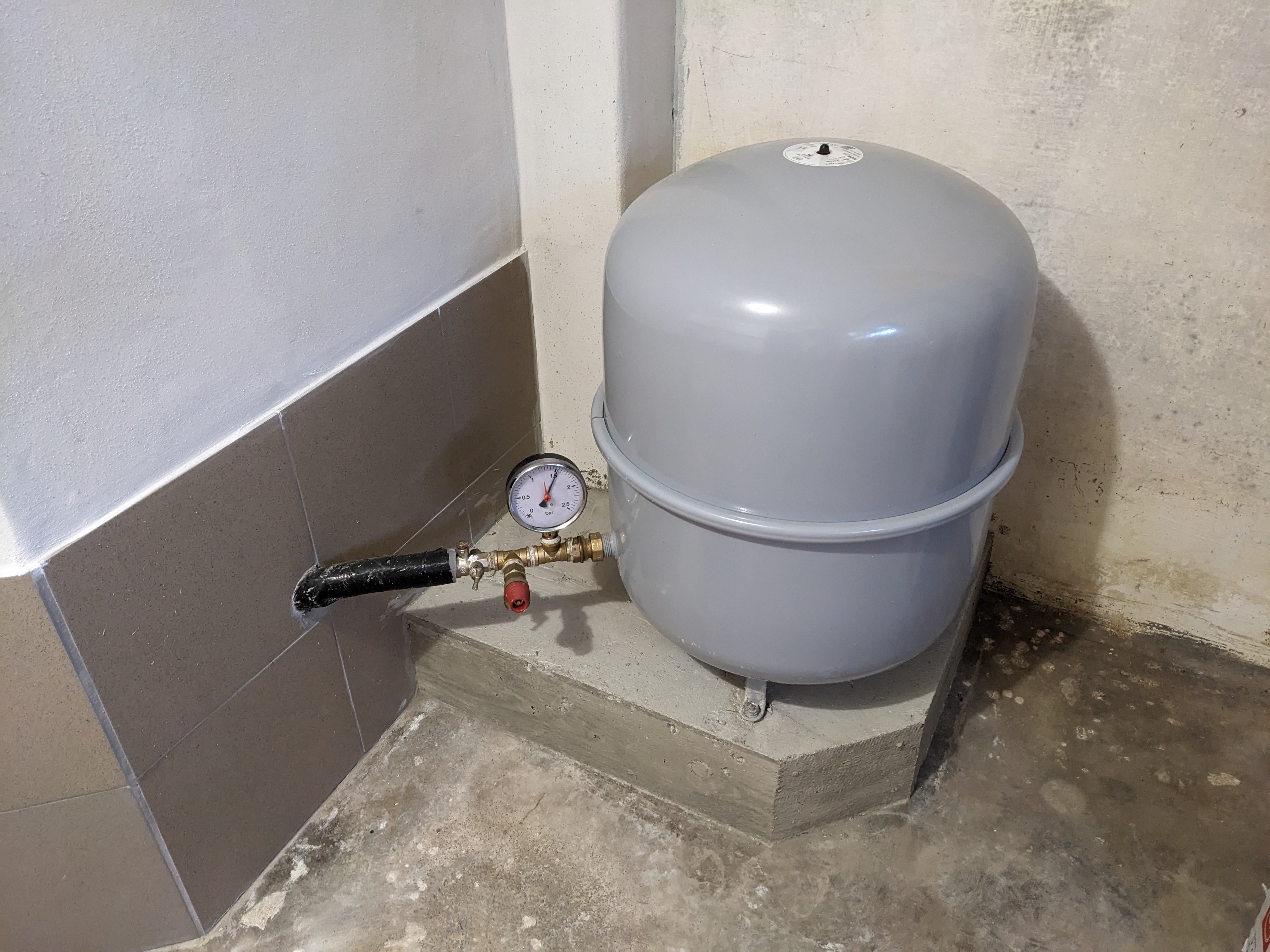 Zkrátka v měchu expanzky musí být správný tlak, aby za studena zabezpečil přetlak i v nejvyšším místě systému a za tepla pobral veškerý zvětšený objem vody. Správný postup jak určit potřebný tlak a jak ho nastavit za studena je tady.