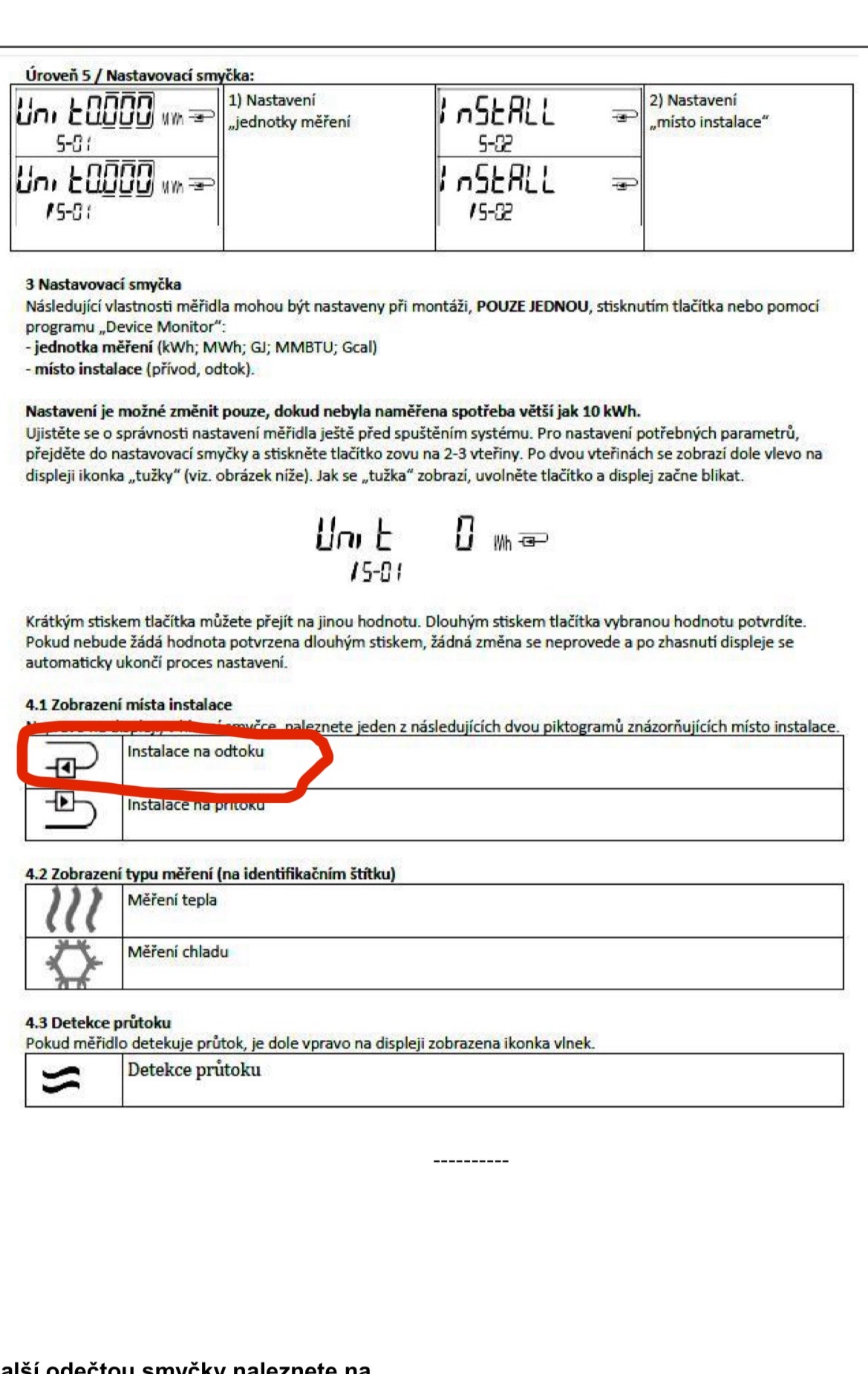 Prisel mi novej meric tepla. Meric s prutokomerem mam na zpatecce takze bych mel nastavit toto jestli to chapu spravne? V privodnim potrubi mam jen cidlo teploty. Diky