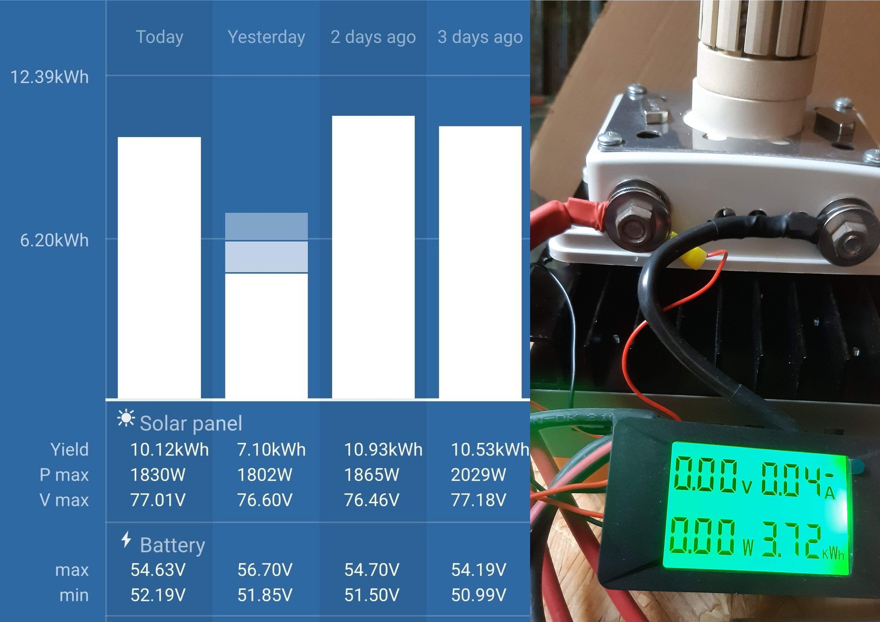 6x Longi 370 JV+ 6x Longi 370 JZ 4440 Wp, 3x430 Longi JZ 1290 Wp | Victron 150/35 MPPT | Must PV1800 Pro 5,2 kW | 16x LiFePo4 280Ah