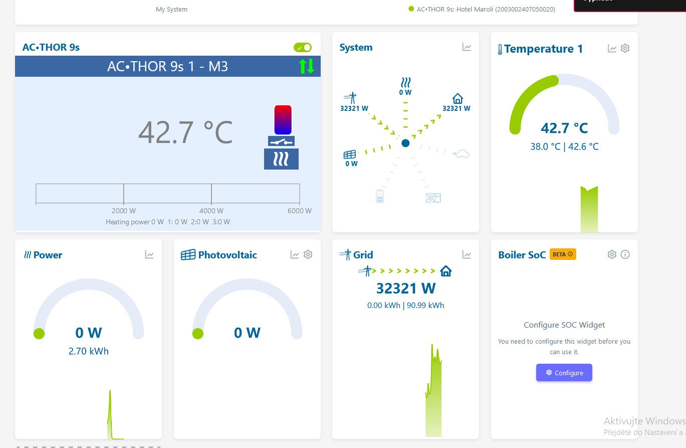 Tady je to v provozu s Huawei ongridy 7,5kw plynule + 2 stupeň 7,5kw stykačem do 2000l bojleru.