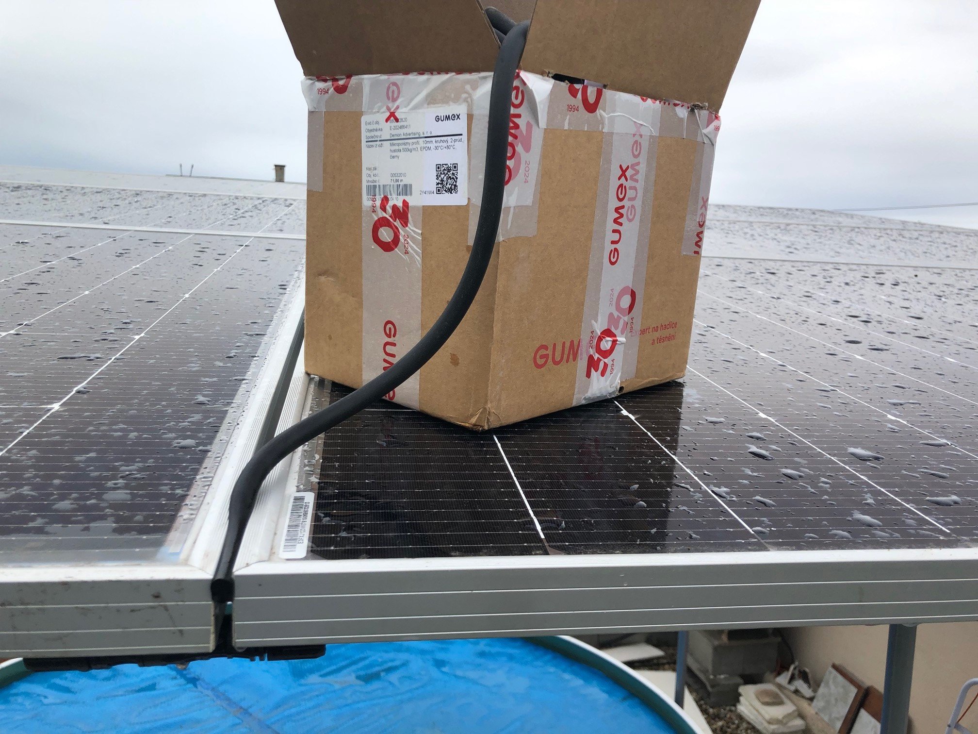 Potom prišiel nudný týždeň akrobacie na rebríku, natierania a schnutia a natierania a schnutia, medzitým som porobil rozvody, mppt a veci okolo toho a prišlo vyťahovanie panelov na konštrukciu.