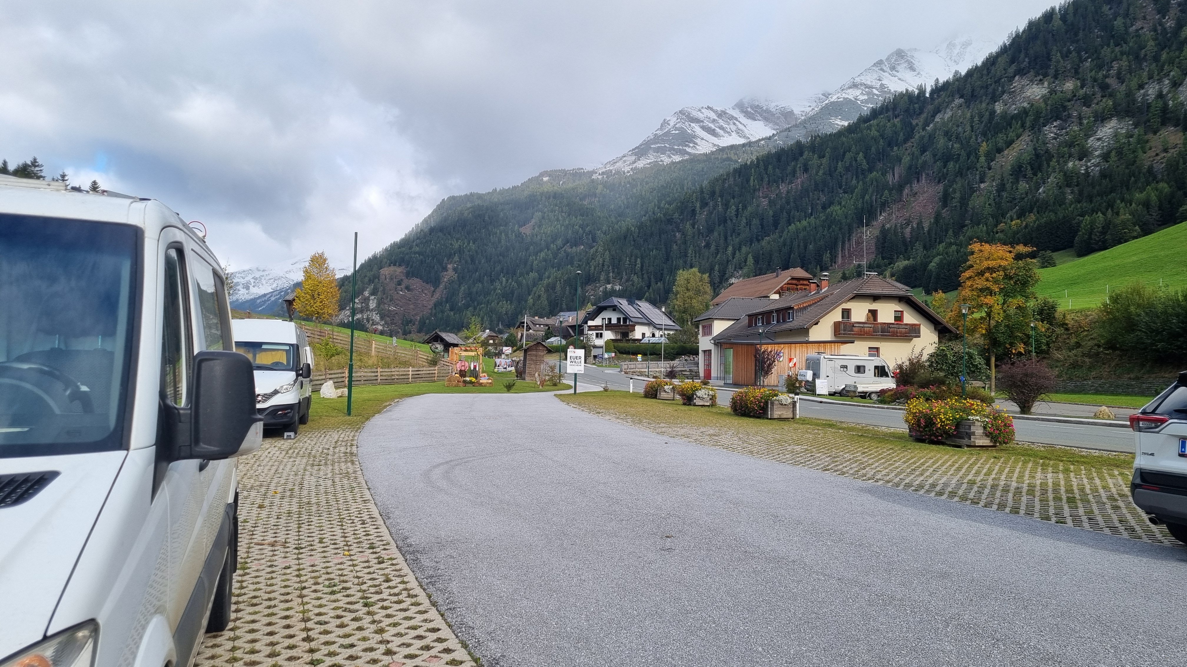 V Alpách jsem spálí už pod zasněžených kopci teplota cca 3st.Bufik jel celou noc.