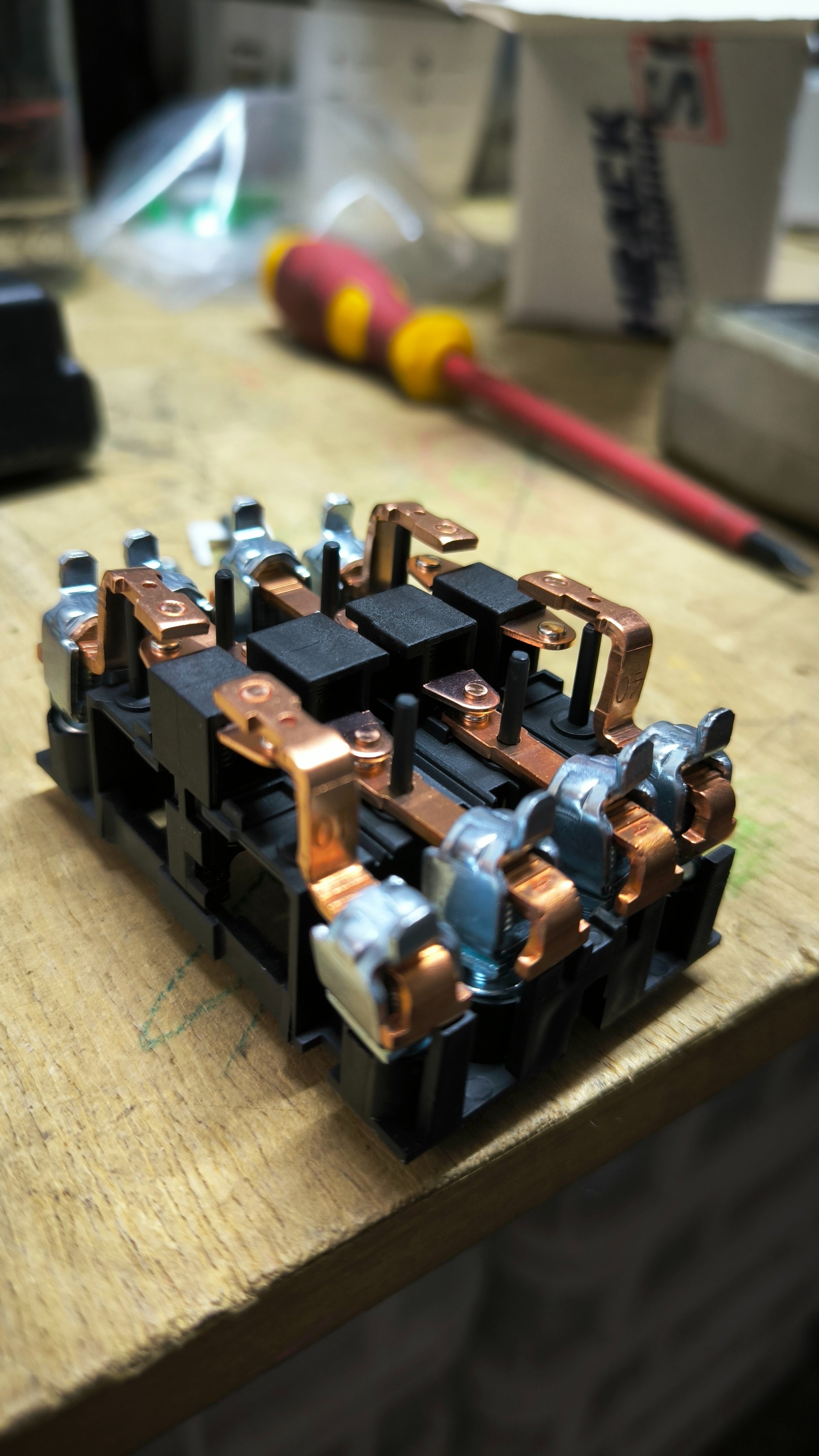 Pán má velikou odvahu. Viděl jsi, jakou máš rezervu na kontaktech na natažení oblouku při přepnutí? Asi ne, protože tohle bys jinak nikdy nepoužil. Mě tohle zapojení stálo 40A nožovku a jeden siton, ze kterýho zůstal použitelnej jenom displej...