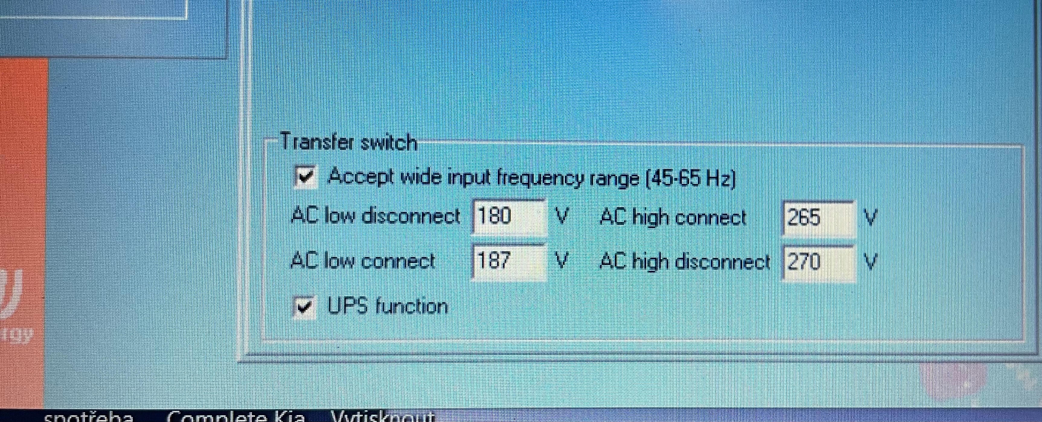 U mého můžu nastavit APL/UPS/VDE a podle toho to přepíná u APL při 90V u VDE 180 či 185 teď to zhlavy nevím, a samozřejmě když zareaguje na pokles dřív tak na výstupu to napětí zakolísá míň a nebude taková špička na baterku.