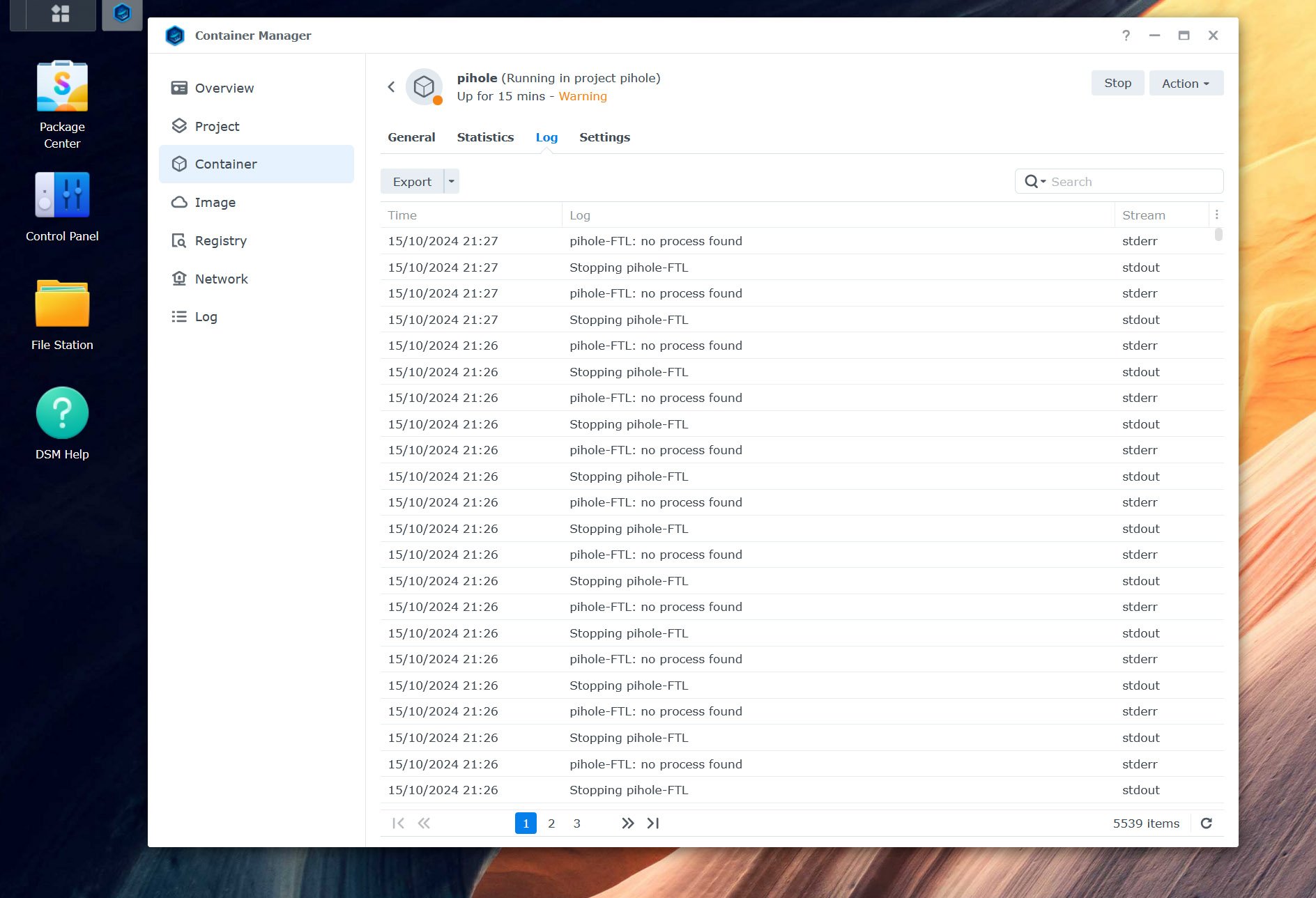 Tak jsem zkusil v NAS Synology Docker container podle návodu pro opičky na https://pimylifeup.com/pi-hole-synology-nas/