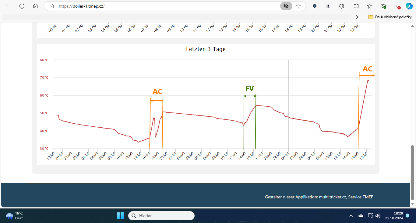 Teď mám nastaveno 16h a zapnout pokud bude teplota pod 43 Stupňů.