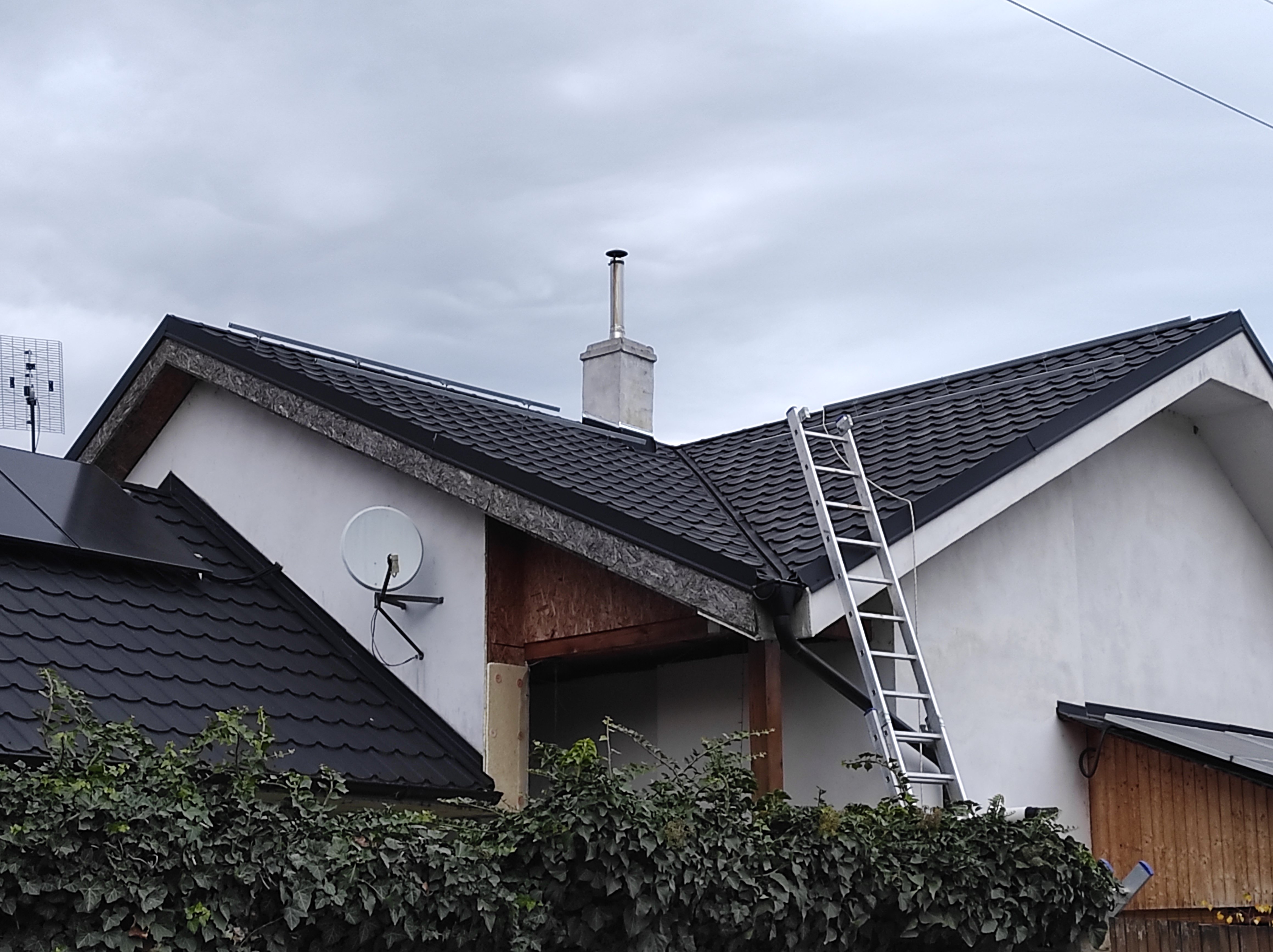 zaroven s montazou konštrukcie na panely som po "firme" zahadzoval po 6tich rokoch zniceny silikon okolo komina a nahradil som ho bitumenovym tmelom a bitumenovou páskou.