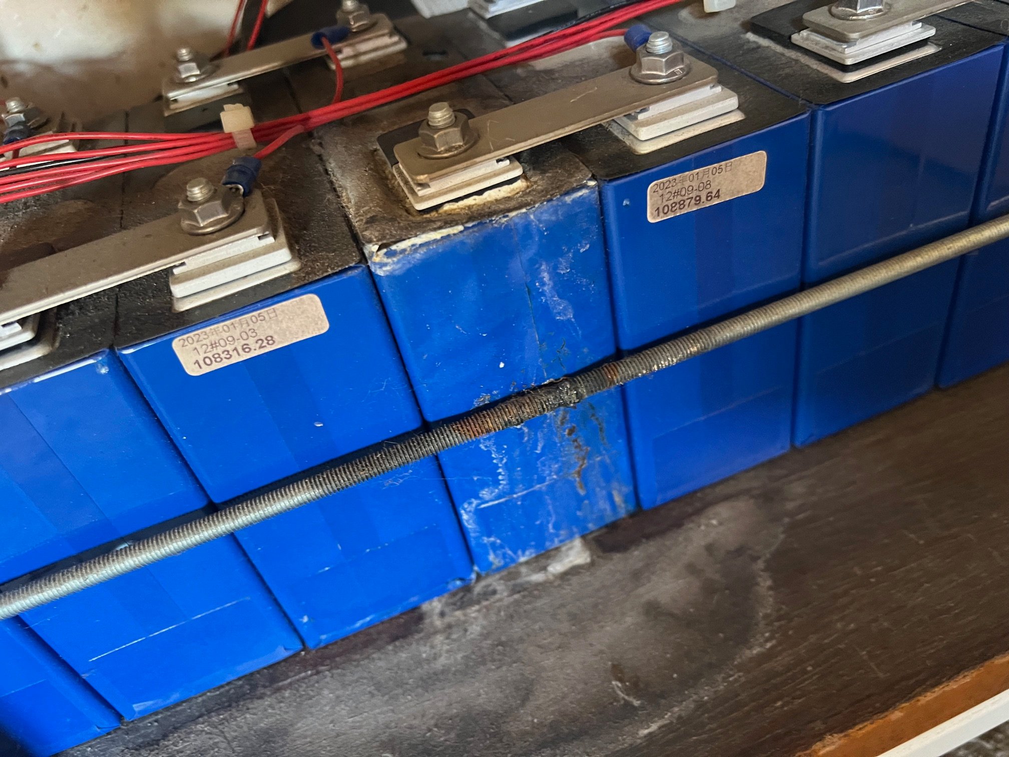 odborná práce nejmenované firmy. 3 ks 100Ah banky 3 modrásky 3 epevery trvale nabíjené na 58V. odběr jen na jedné fázi takže první banka byla držena do 54V. OStatní dvě jen havarijně odpojovány BMS pri 3,7V