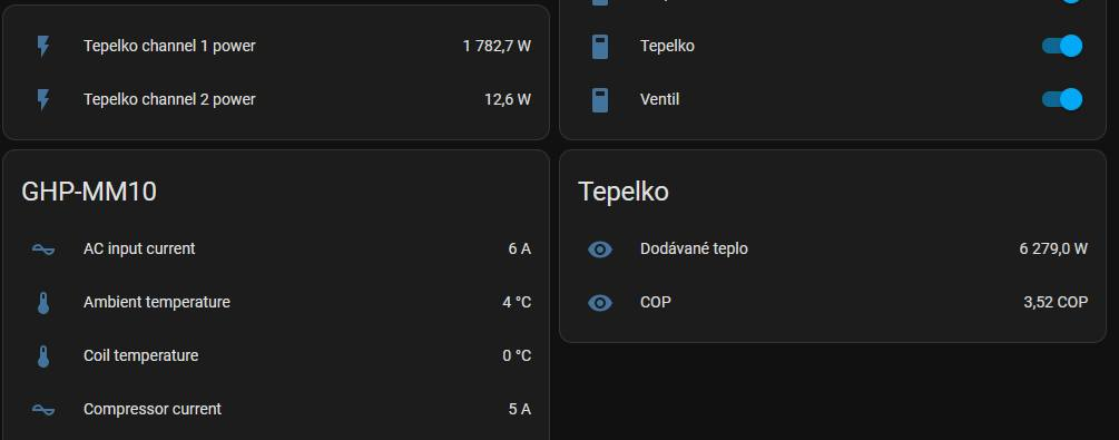 a1bert píše: ned lis 03, 2024 12:05 amsame lepsi zpravy, me to pri dnesnich venkovnich 1C a minimalnim vykonu (cil 26C/prikon 600w) jelo s COP 2, kdyz jsem zvedl cil na 30 tak se COP pohl k 2.5 ale k deklarovanym 4.5 to ma teda daleko...