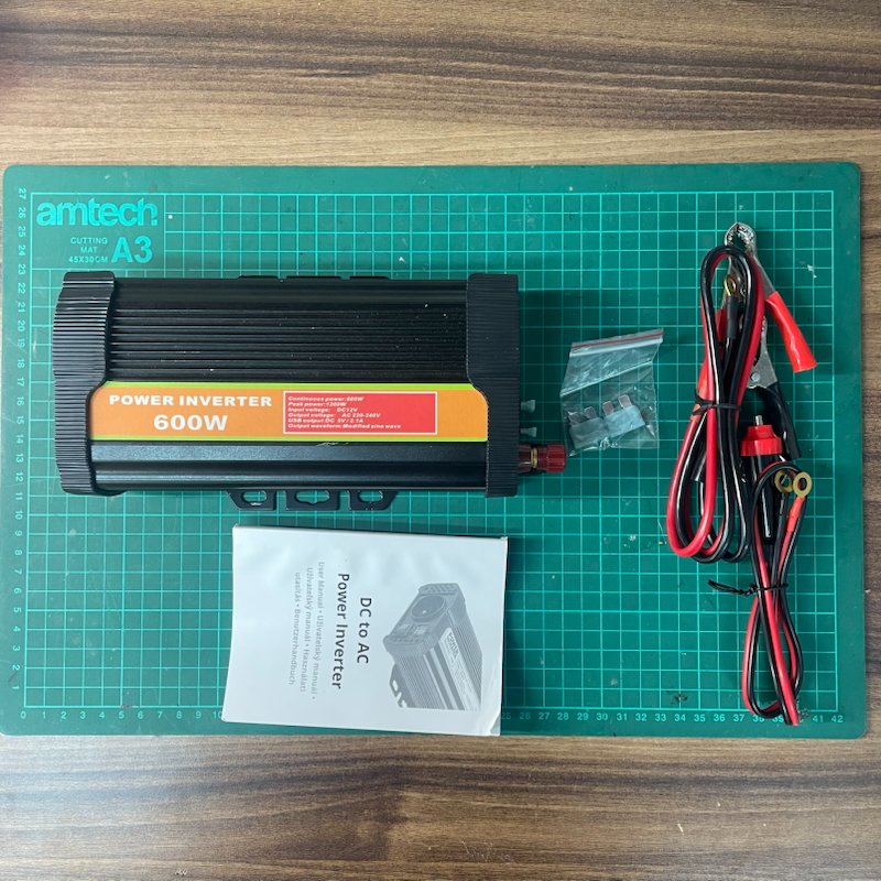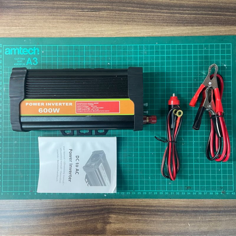 Měnič napětí 12 V na 230 V, výkon 600W (max 1200W), výstupní proud 2100mA, připojení na autobaterii, Aktivní ventilátor, Ochrana proti přepětí, USB konektor