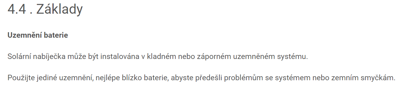 Uzemění jednoho pólu DC vyžaduje i Victron: