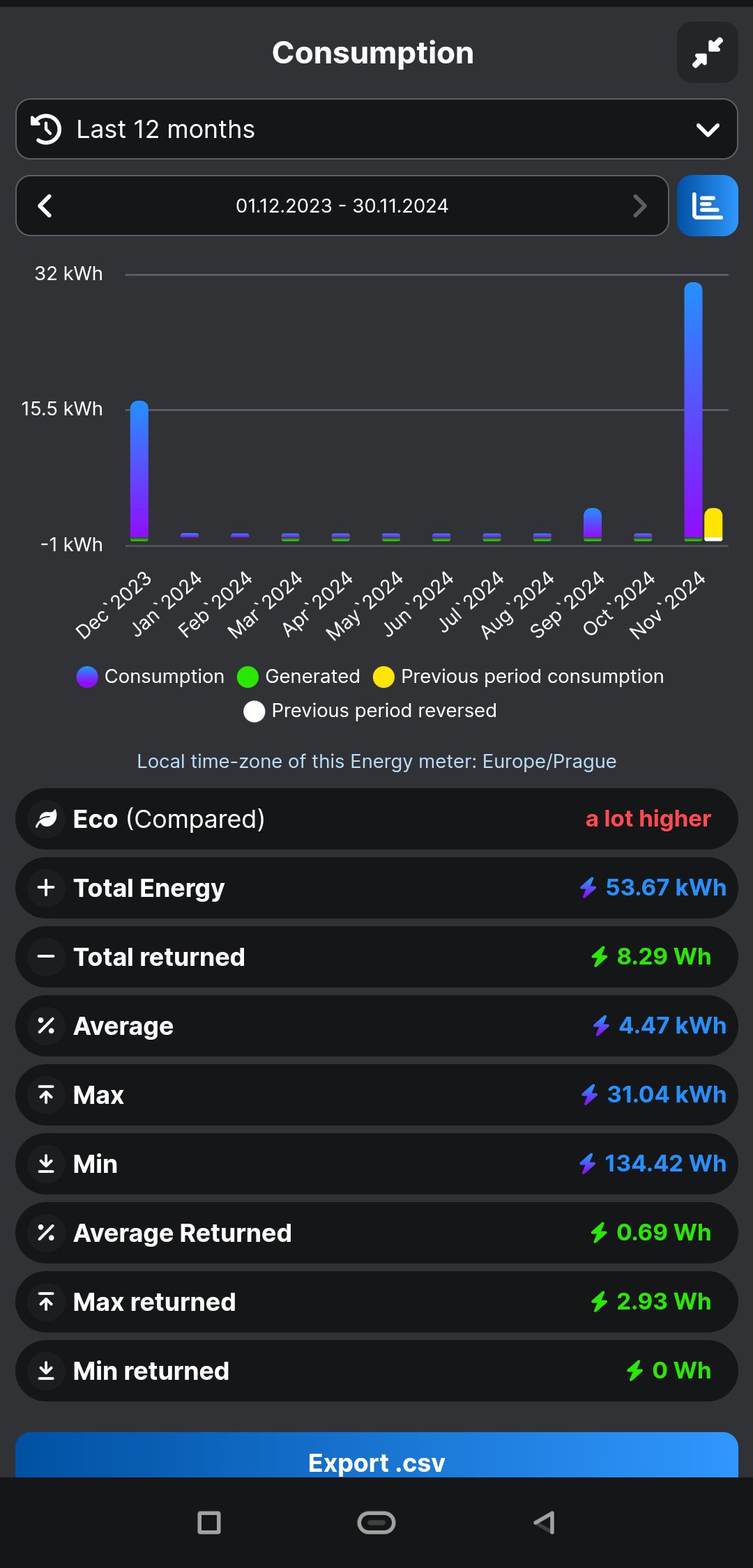 Když se v Shelly povolí cloud, tak se na něm shromažďují data. A když si člověk do mobilu nainstaluje jejich aplikaci Shelly Smart Control, tak si ta data může prohlížet, nebo třeba stáhnout.