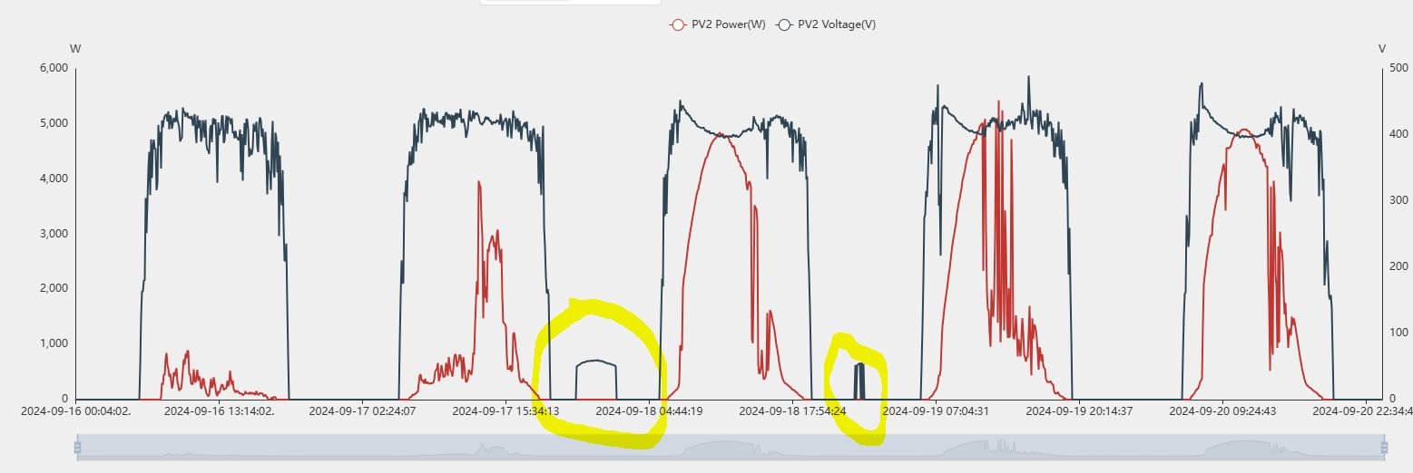 Tomu že vystoupá napětí u dlouhého stringu nad napětí baterie věřím, ale tomu výkonu bych věřil až po potvrzení od BMV712.