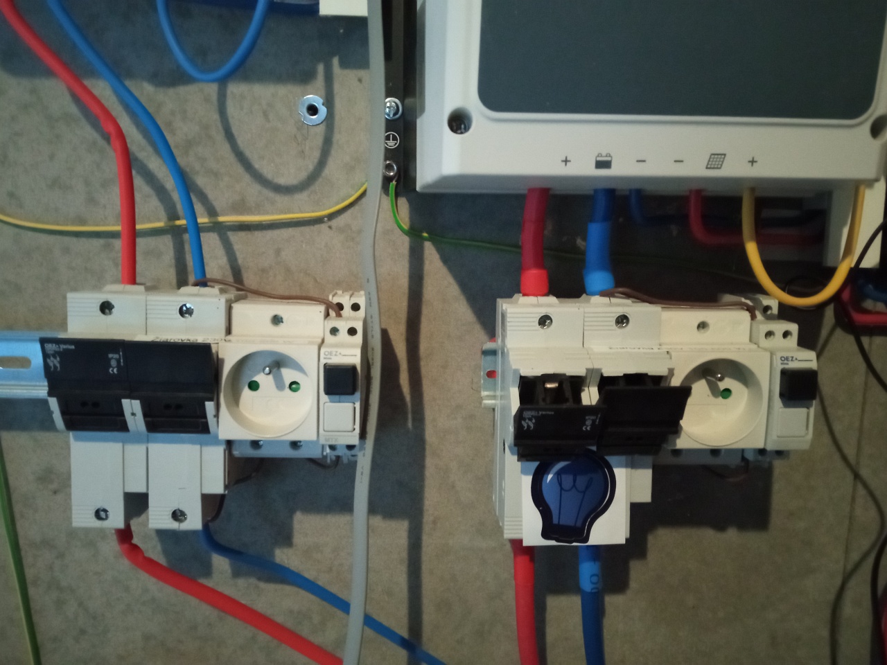 Nožovky 000 160A používam na pripojenie akumulátorov k zbernici. Na pripojenie regulátorov používam valcové poistky 22 mm, nabíjačky cez 14 mm valcové poistky. Pre každý poistkový držiak mám len jednu hodnotu poistky. V prípade potreby novej poistky tak nemusím v šeru rozsvecovať, nemusím si brať okuliare a nemusím čítať, čo je na poistke napísané. Nedá sa pomýliť, čo v akom strese by som bol. Na druhú stranu, čo by sa asi muselo stať, aby mi tieto poistky vybavilo a ja som musel "iba" nahradiť spálenú poistku... A spoj medzi akumulátorom a regulátorom by sa nemal "bezdôvodne" rozpojiť, ak nechcem prísť o regulátor (keď je napájanie z panelov). Ovšem sú situácie, kedy je cena regulátora nepodstatná, na to tam tie poistky sú.