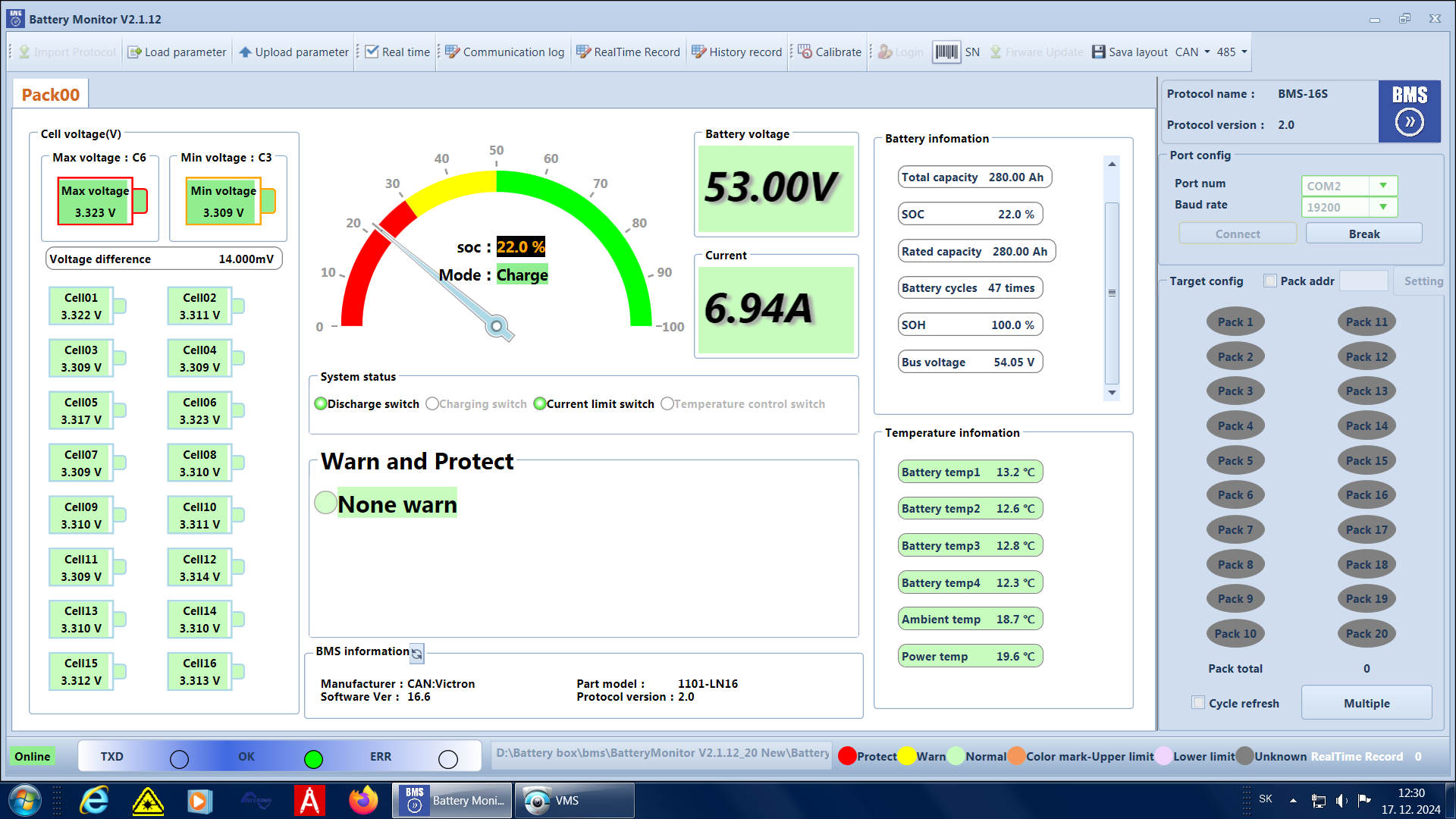 Prostě já BMS neřeším, tam je důležité správně mět nastavené odpínání baterky dle napětí a proudu (zkratu) a to funguje OK, SOC měřím BMV712 od victronu.