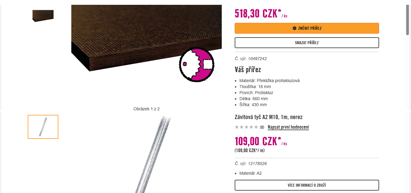 Tak jsem se jen tak cvičně podíval do toho Tvého českého Hornbachu....eman píše: pon pro 30, 2024 7:42 pmJako fakt? Dvě malé desky v Hornbachu á 60Kč, jedna větší 140Kč, Nevím proč tam jsou použité šrouby, které mají mnohem menší pevnost v tahu, ale ok 40Kč za všech 12ks, a těch 6 tyčí jsou patrně trubky s navařeným závitem, což je úplný nesmysl nebo tyčovina, což snad ne.