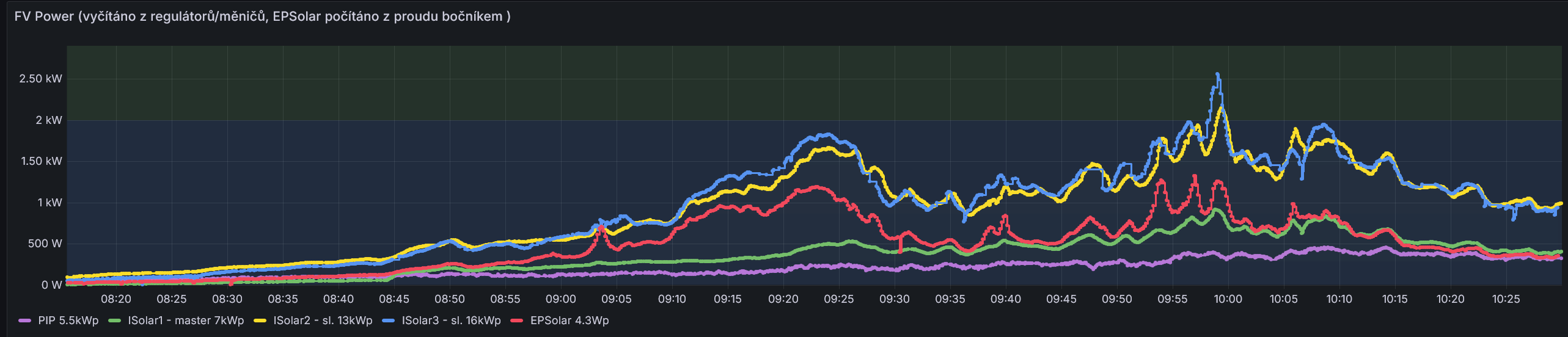 Teď už zbývá jen spotřeba DC spotřebičů (hlavně DC podlahového topení) - asi opět pomocí INA226. Pak už bude vše v HA, elektroměry budu moci demontovat a elektrárně ubude něco drátů.