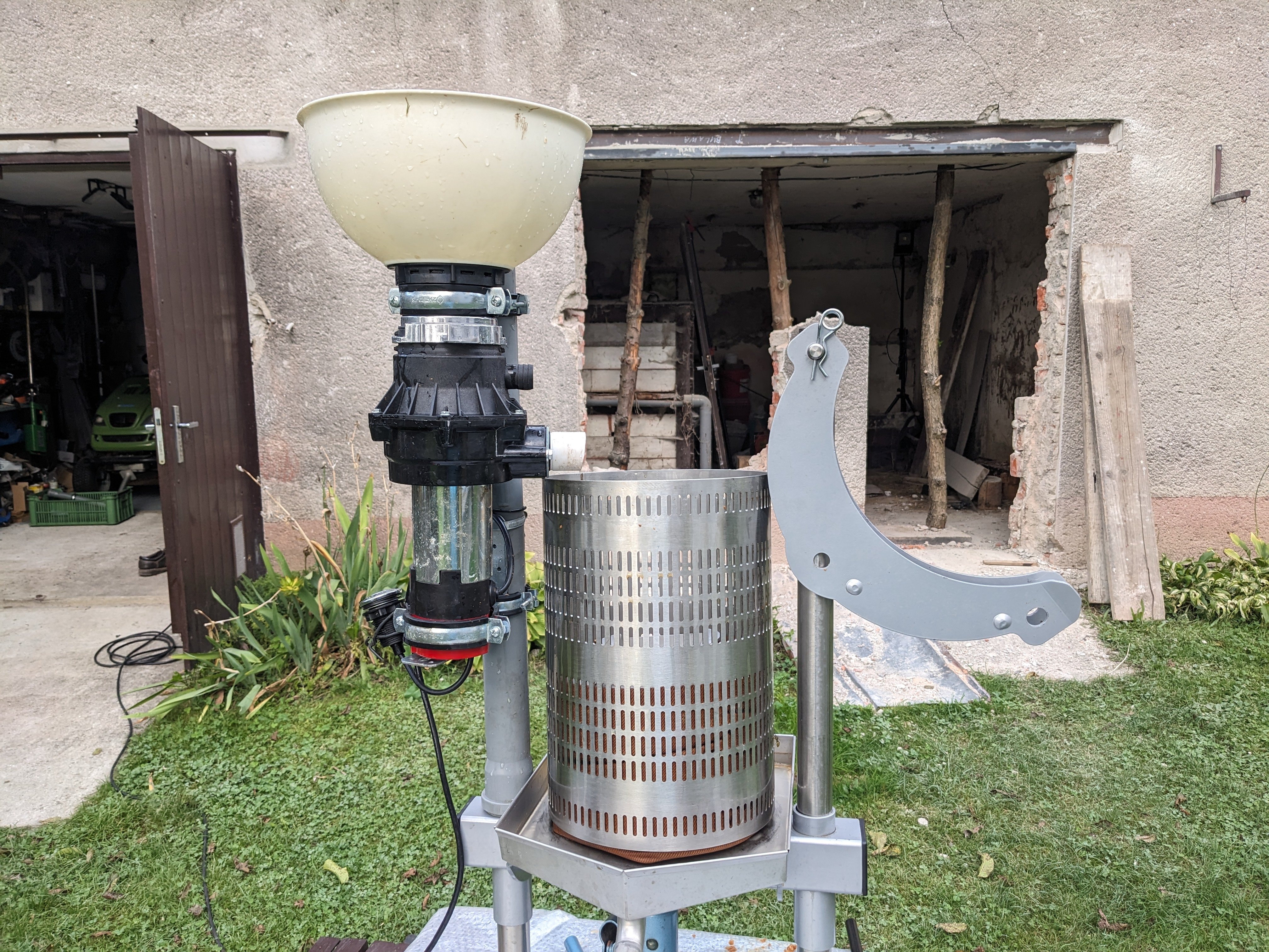 Obyčejný kuchyňský drtič odpadu, nahoře namontovaná provrtaná plastová miska.