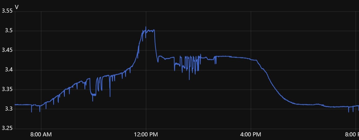 A potom float někam okolo 3.43V aby se šlo do večera pořád se 100%