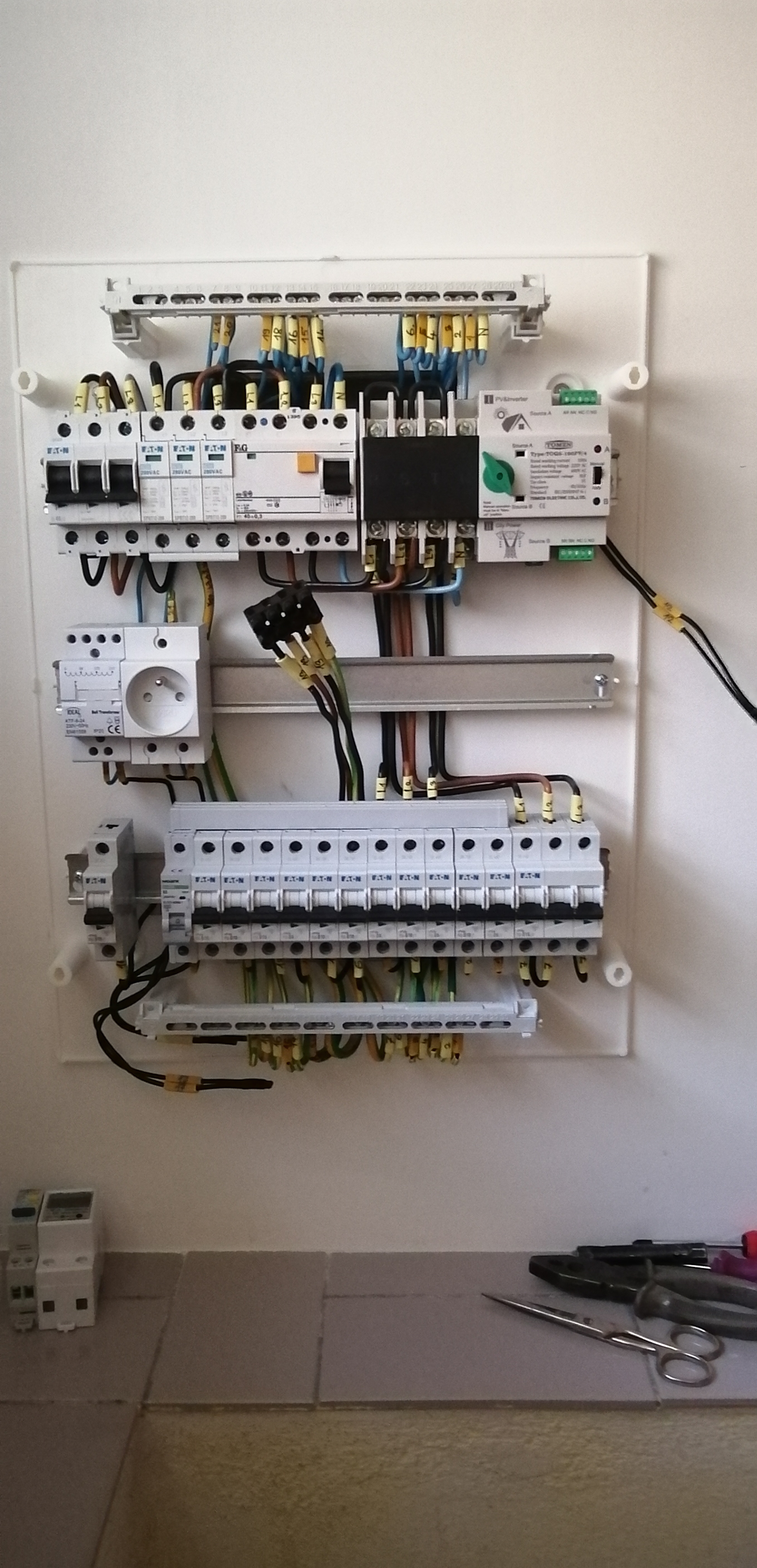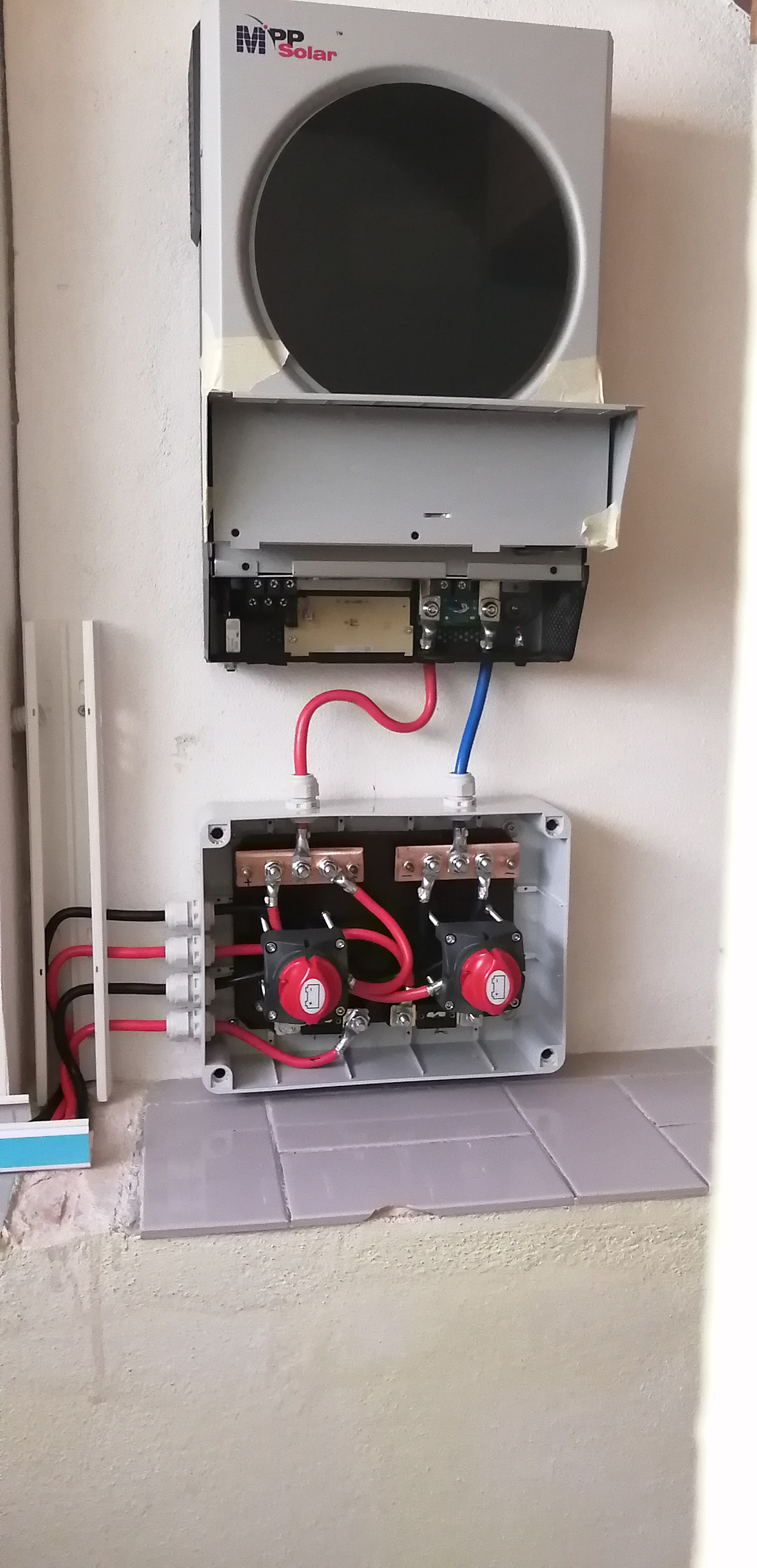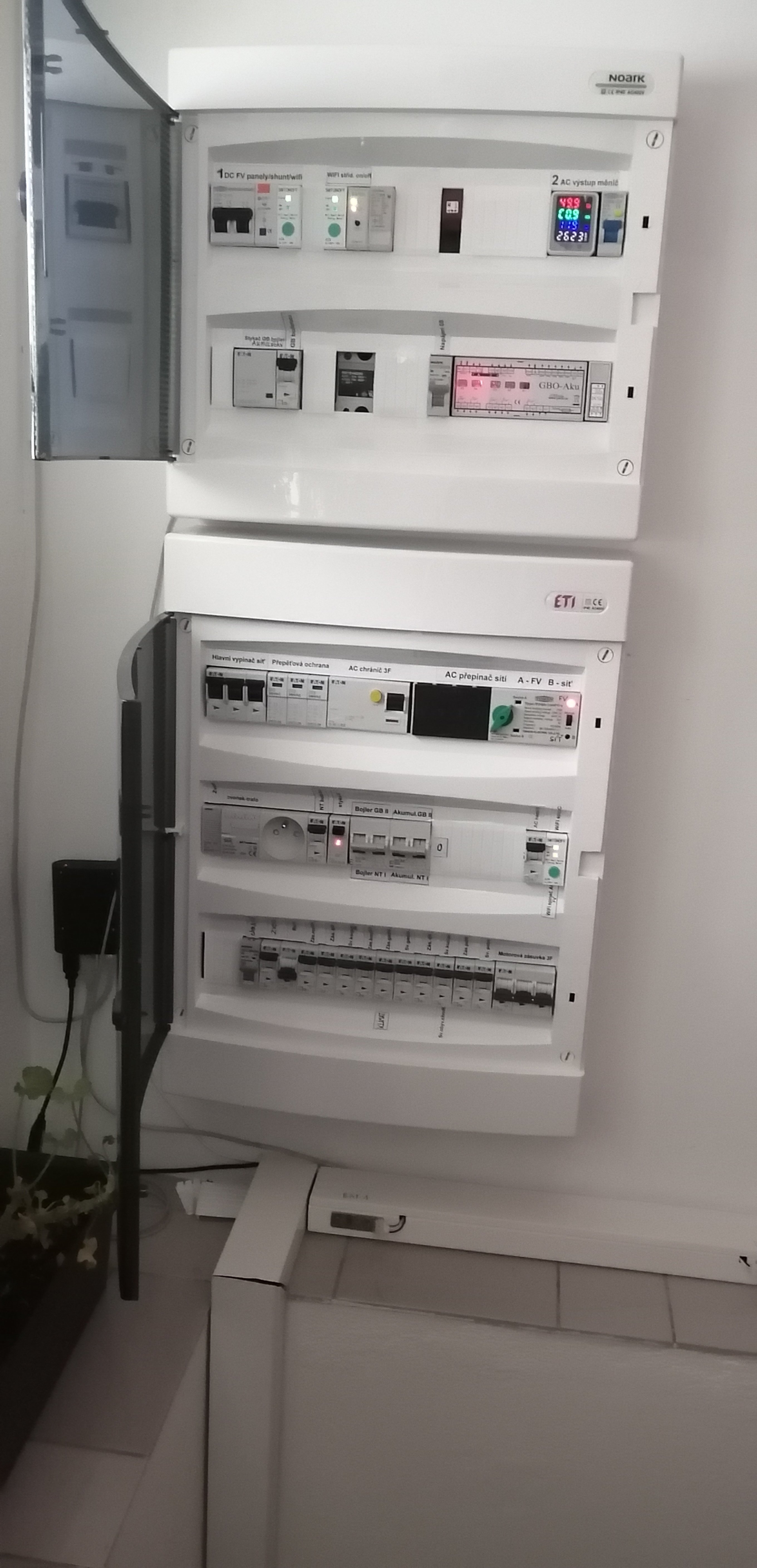 Nejdříve děkuji za nepřeberné množství informací a zkušeností které od vás čerpám od 02. 2022. Moje instalace zatím: 7s 380wp Ja solar, měnič MPP Solar U 5648GK, bat. 2x 16s 120Ah. Přikládám nějaké foto z instalace. Střecha sklon 55st, orientace 13st na jiho-východ. Výtěžnost 95%. Rozvaděč jsem se rozhodl předělat, instalace z 80tých let, naštěstí TN-S. Nyní připojeno, funguji v ostrovním režimu, monitoruji přes Solar Assistant - na RPi4 jsem čekal do 20.9.. ale dočkal. Jinak jsem ve stadiu dodělávek a bojuji se sháněním DCSG ke Greenbonu Acu a s jeho konfigurací. Boiler 100l 1500w zatím řídím ručně