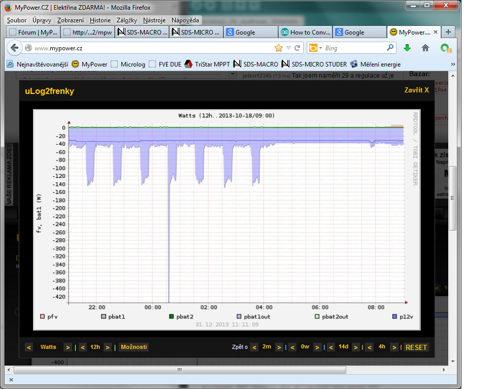 Bohužel se mi nedaří překonat rekord. Za 12 hodin pouze 66 Wmax.