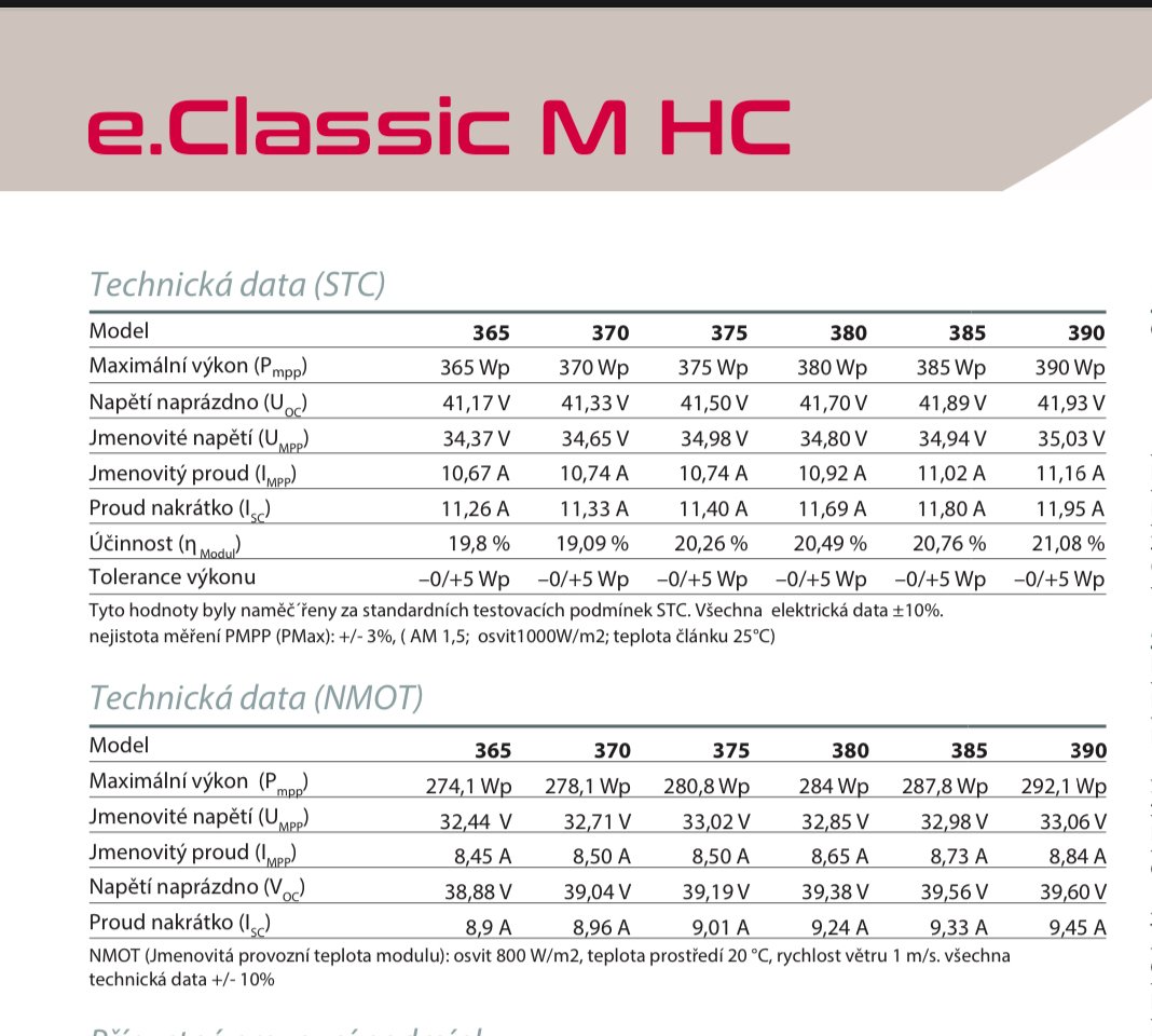 zdravim vsetkych, mam taku otazocku na vas. pravas je to mozno hlupost ale premna dilema na ktoru neviem najst jasnu odpoved. takze k veci, mam fotovolticku elektraren ktora sa sklada s 10ks panelov 385wp (vid priloha) zapojenich seriovo.