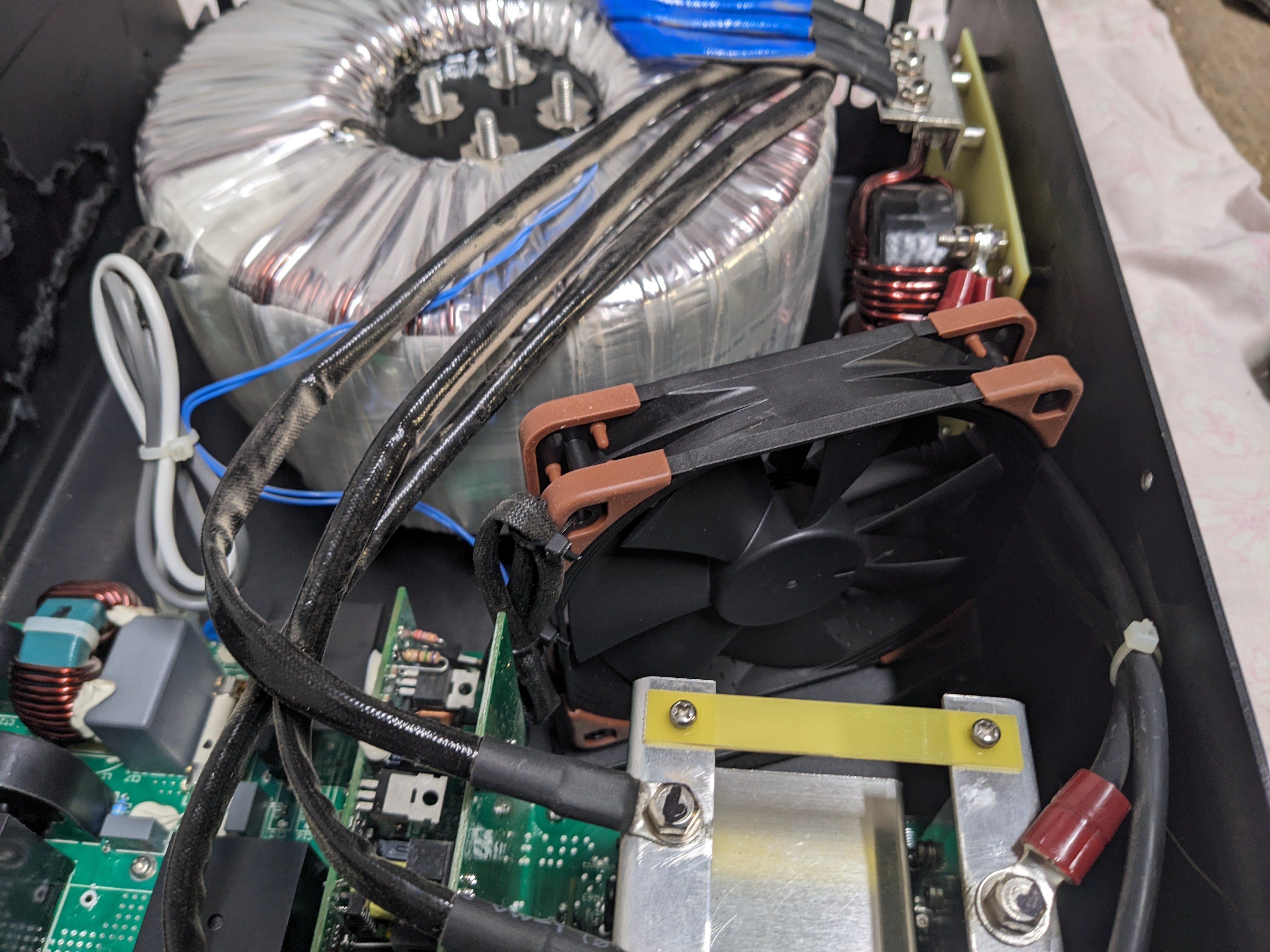 Dnes jsem sundal Multipluse, vyměnil ventilátor, držák ventilátoru podložil pěnovou gumou, toroid podložil kusem duše z autobusu, zítra vyzkouším, jestli došlo k nějaké znatelné změně.