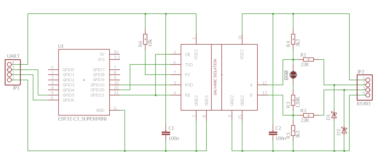 Nakoniec bude najjednoduchšie použiť izolovaný RS485 prevodník ADM2483. ESP32 sa môže napájať priamo z BMS, alebo aj cez spomínaný izolovaný DC-DC zdroj.