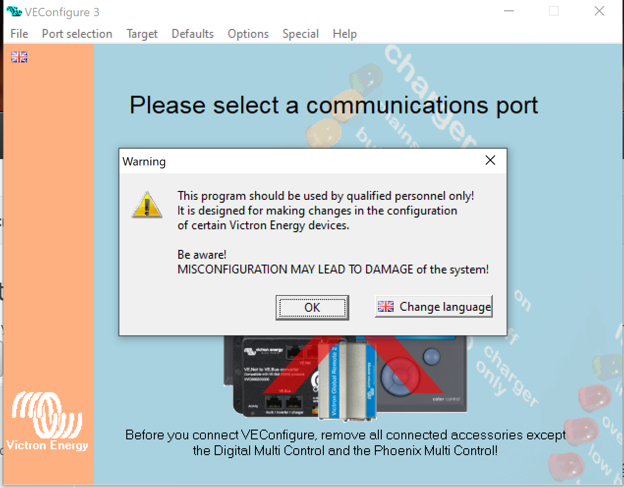 Ve config je volba pro nastavování, ostatní programy jako VEquick a VE system je pro konfiguraci vícero měničů a resetace.VE flash je pro změnu firmware, po zakoupení by se nemělo nic jako firmware měnit pokud nebude požadavek složitější konfigurace, např. pro assistenty a tp. někdy to chce upgrade, obvzláště po ostrém napojení MK3 a při obnovení verze VE configure, mám to zpravidla offline pokud vše funguje bez problémů a nenapojuji se s připojením k internetu, jen s odpojeným, protože to automaticky vyhledává aktualizace. Help o kliku pravým talčítkem myši volba puntíku pro naprogramování relé (MP má dvě nevím které to zrovna je) na kartě je i fajka pro inverzi všech podmínek které se následně nastavují klik do pole hodnot a změna podmínek při něčem toto je zrovna volba nějaké prodlevy v sekundách při nějakém zvoleném výkonu