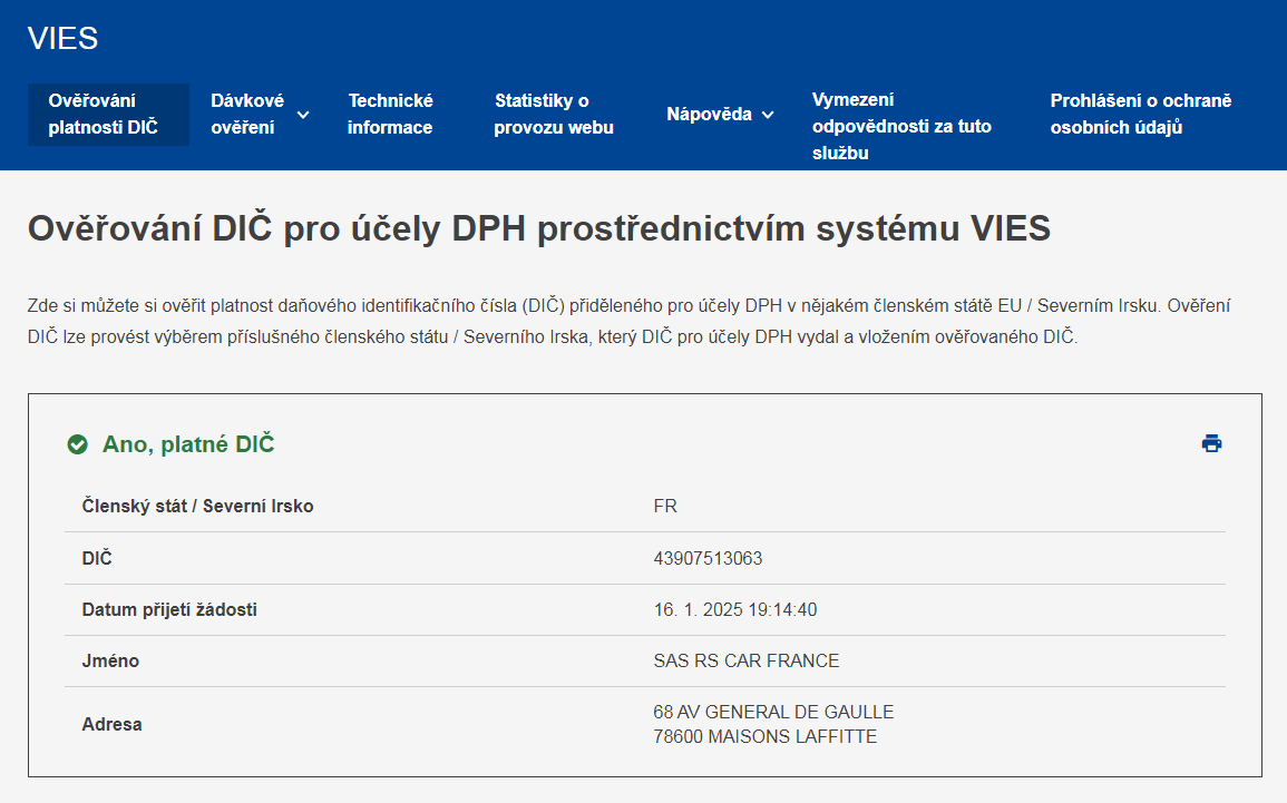 Hm, to sídlo budí důvěru. Stejně tak, že nemají EORI - celní daňové číslo, takže nějaký dovoz těžko dělají. To je max. nějaký 27 letý prezident zprostředkovatel.Valdano píše: čtv led 16, 2025 6:58 pmMajitelem a zároveň prezidentem firmy je Sofiane ROSA. Jestli je to nějaký podvodník toť otázkou.