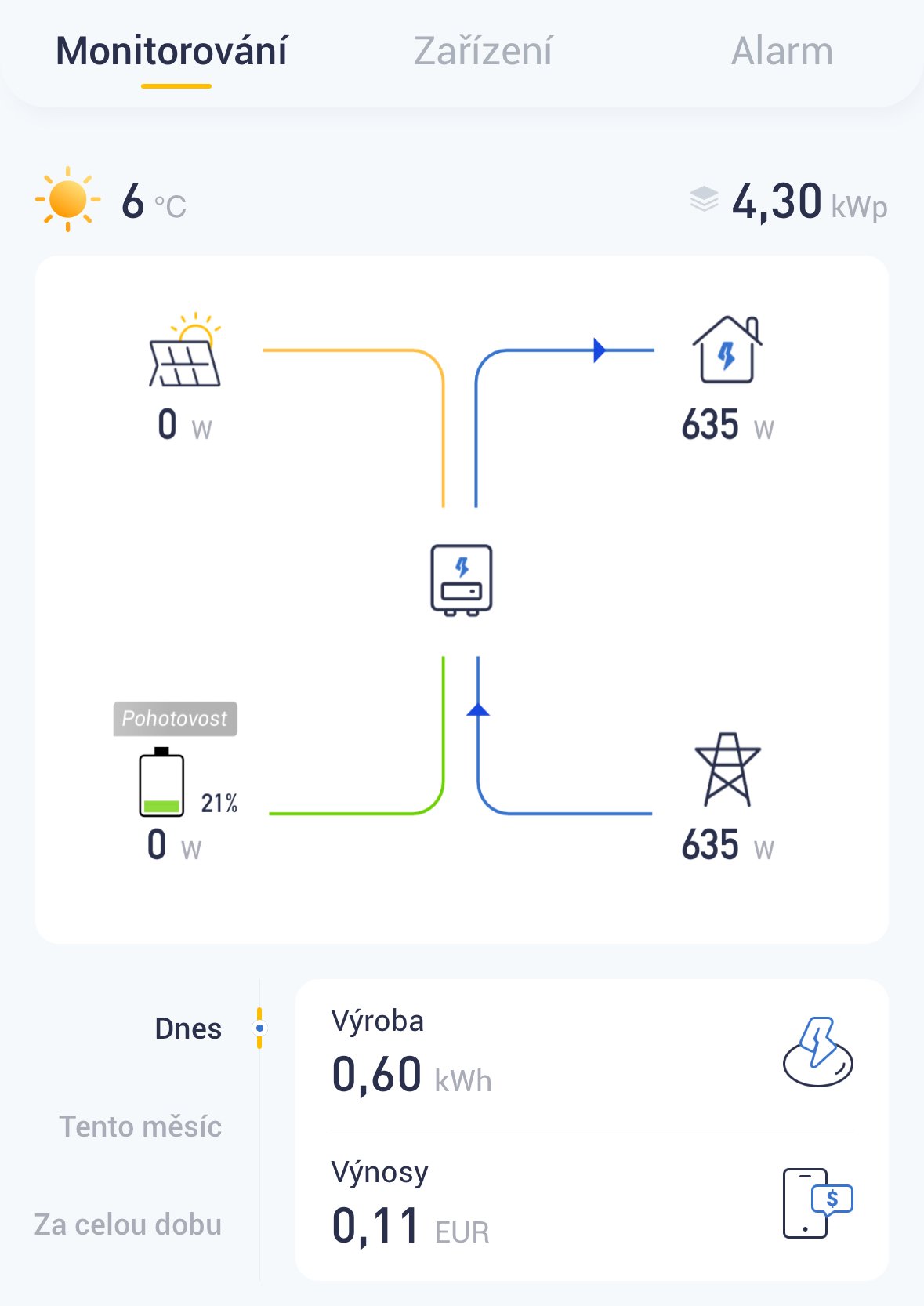 Aplikace střídače mi právě taky hlásí žádnou výrobu.