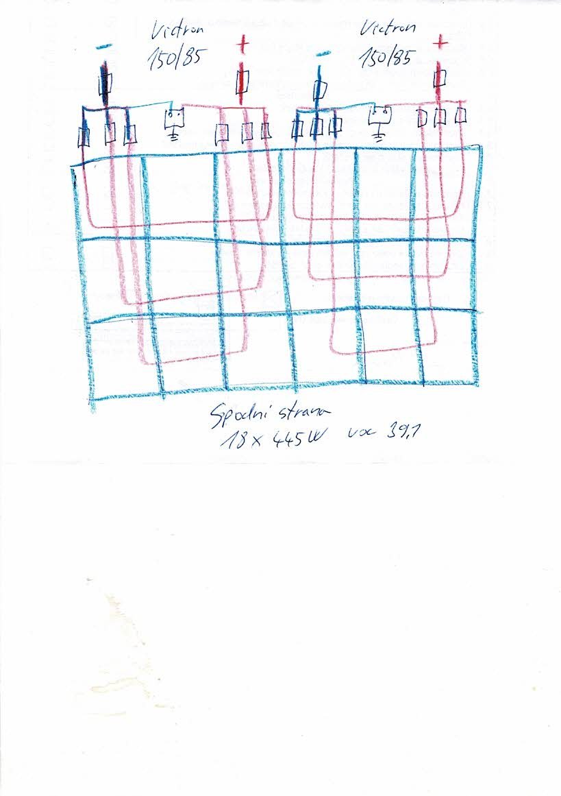 taky plánuju sřechu z panelů viz obrázek bude tam 18ks Bifacial 445w a chci to do 150V bude to takto fungovat, nevím co to bude dělat když bude např. na spodních panelech sníh