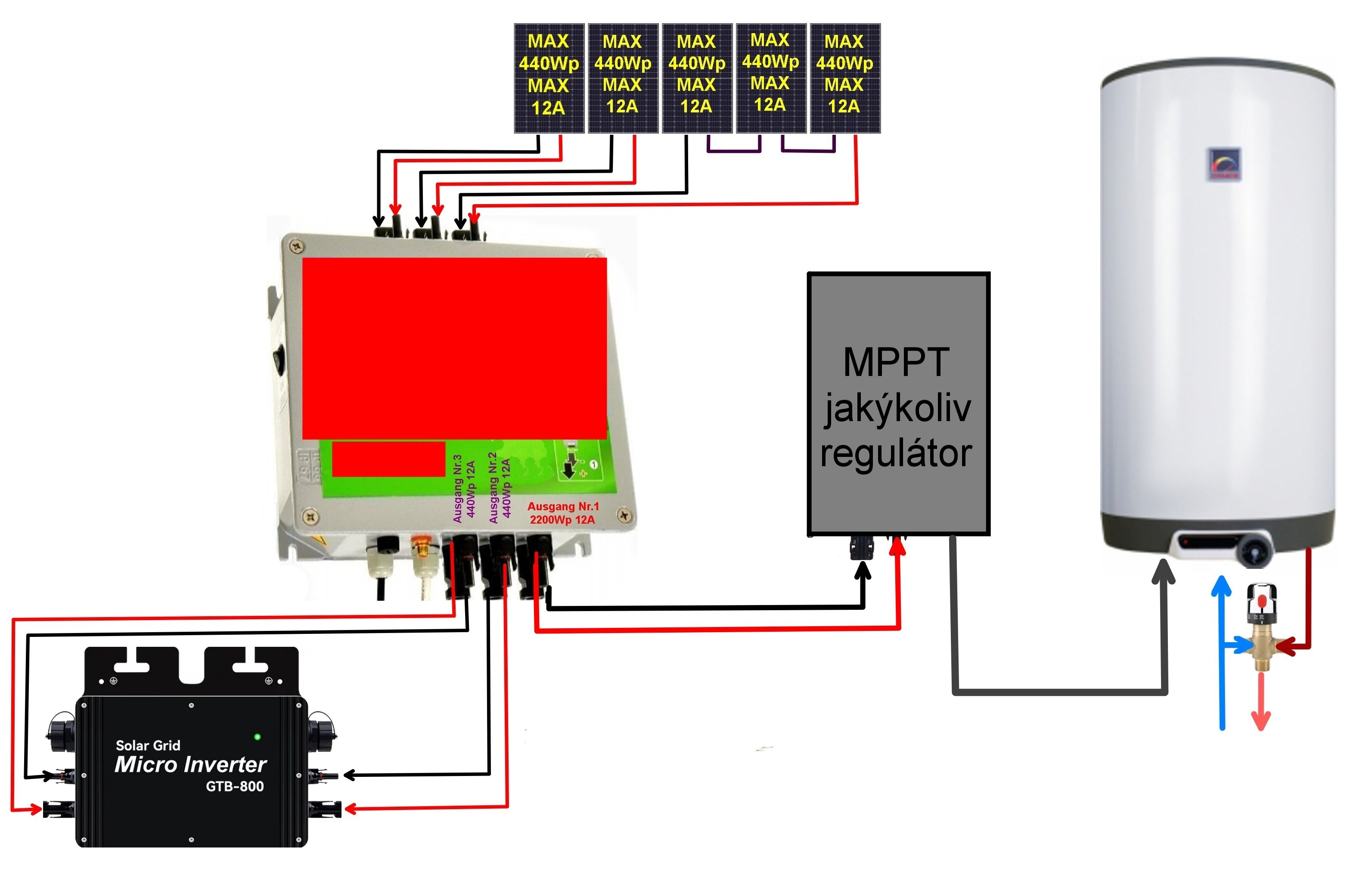 ano, spirála je rovnou daná klasická 2,2kw dražice. pokud EGD schválí balkonovku což by snad bez problémů měl, tak přetoky mě asi nějak trápit nebudou, mikroinvertory dle všeho " snesou " 1000w bez problémů ,mají omezen na 800w výkon na výstupu a některé mají již limiter. Na straně zátěže bude 800w čerpadlo nebo/a 3 splitová klima. Jestli je ale nejjednodušší 6 panelů na TUV a 1 nebo 2 solo panely na balkonovku asi taky řešení bez přepojování a složitostí.Myšlenka byla dle načtených diskuzí kde spousta lidí TUV "přepanelovává " k možnému maximu z důvodů větší účinnosti v zimě
